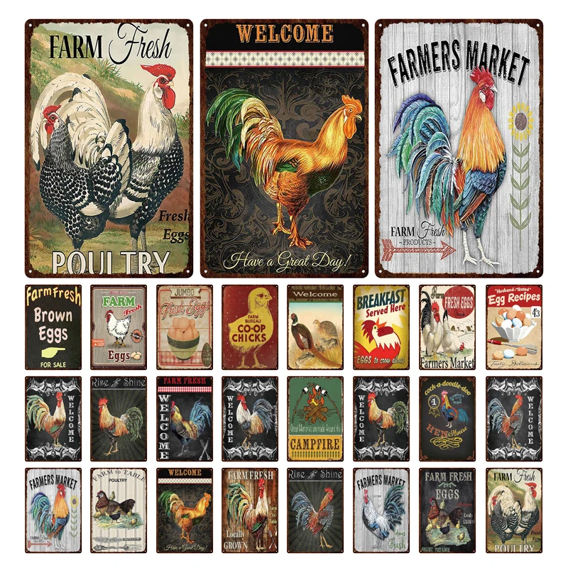 Куриной знак на металлической пластине фермы свежие яйцо Винтаж курятник Декор жестяная вывеска петуха из металла плакат Декор Винтаж настенная живопись
