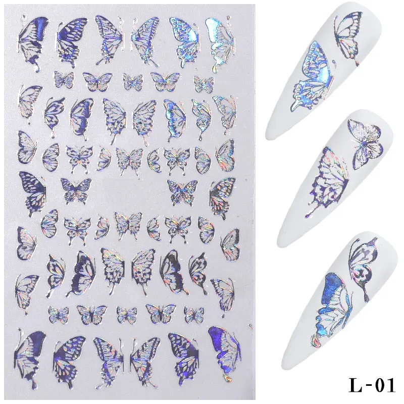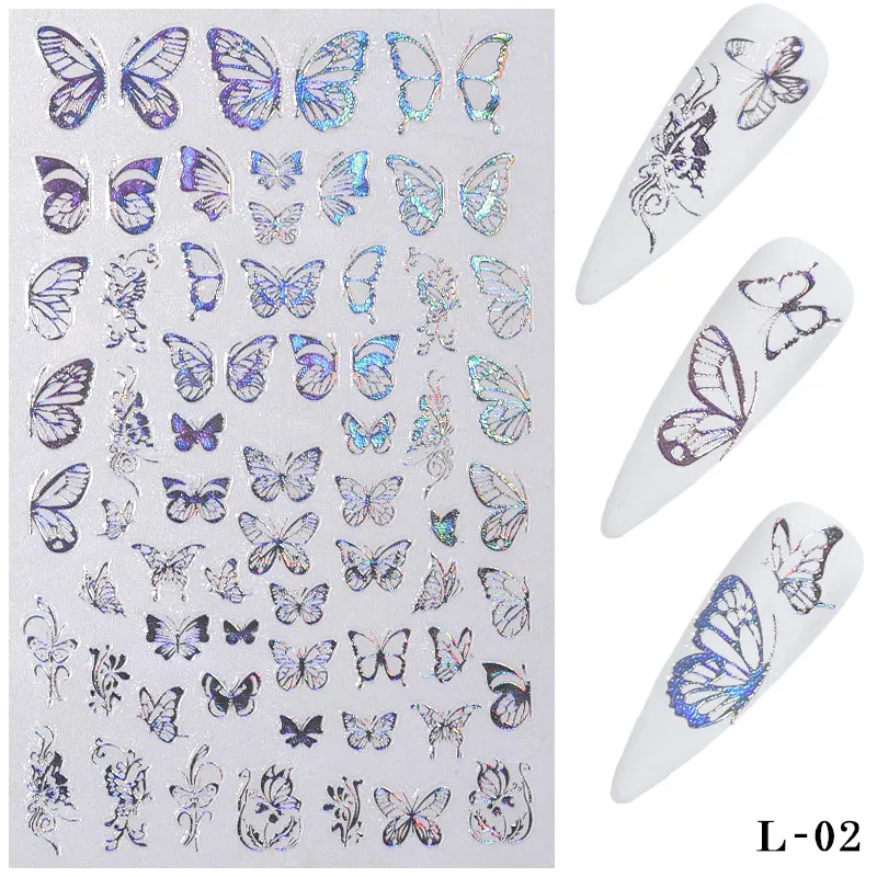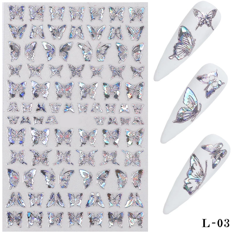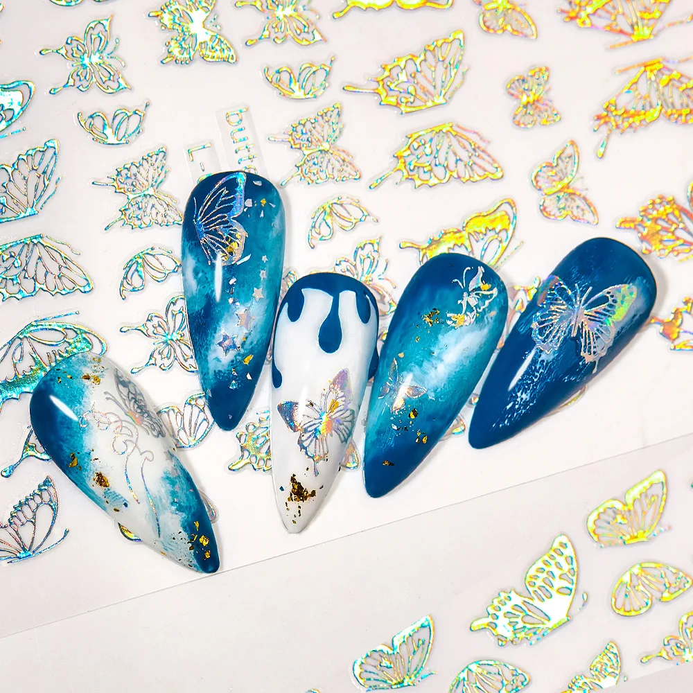 1 шт. голографические 3D наклейки-бабочки для дизайна ногтей клейкие слайдеры Красочные золотые переводные наклейки для ногтей сделай сам Фольга Обертывания украшения
