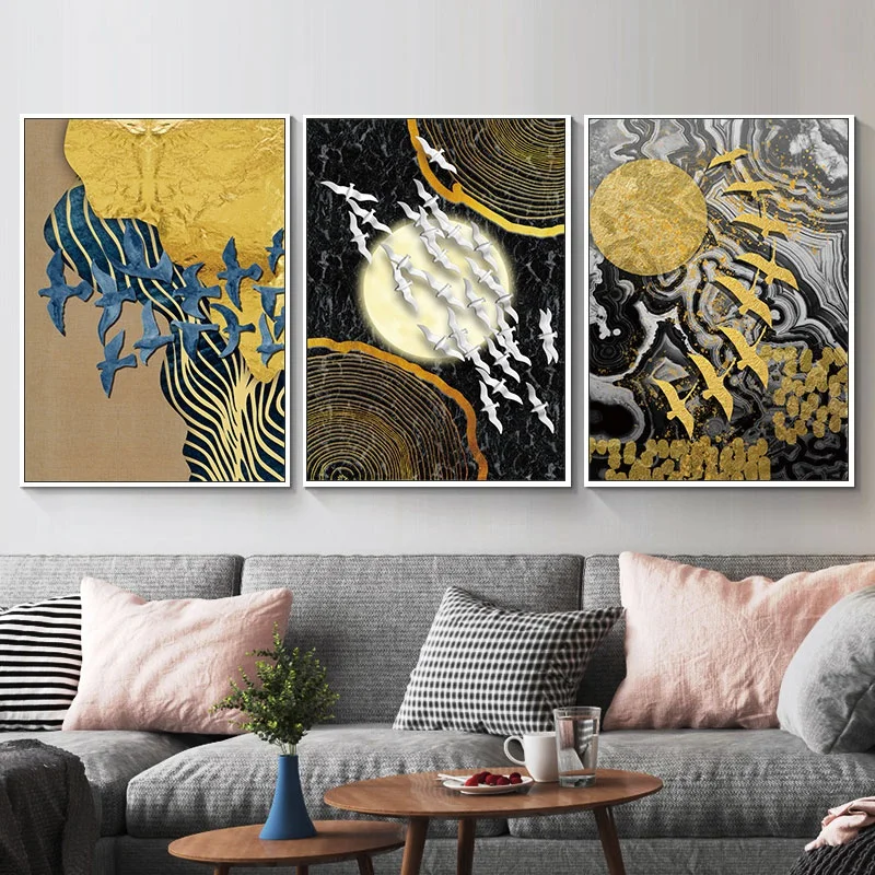 Современная Абстрактная птица, луна без рамки, художественная живопись, принты, роскошные декоративные настенные постеры для гостиной, офиса, домашнего декора