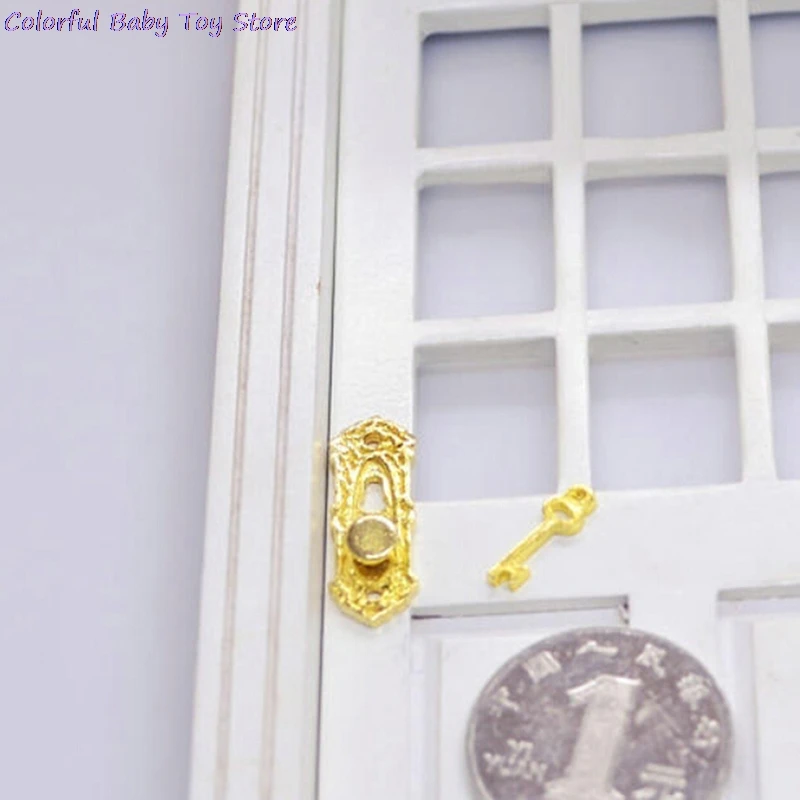 1:12 миниатюрные металлические латунные ручки для кукольного домика, набор ключей с замочной скважиной, дверной аксессуар, дверной замок с для ключей, игрушек