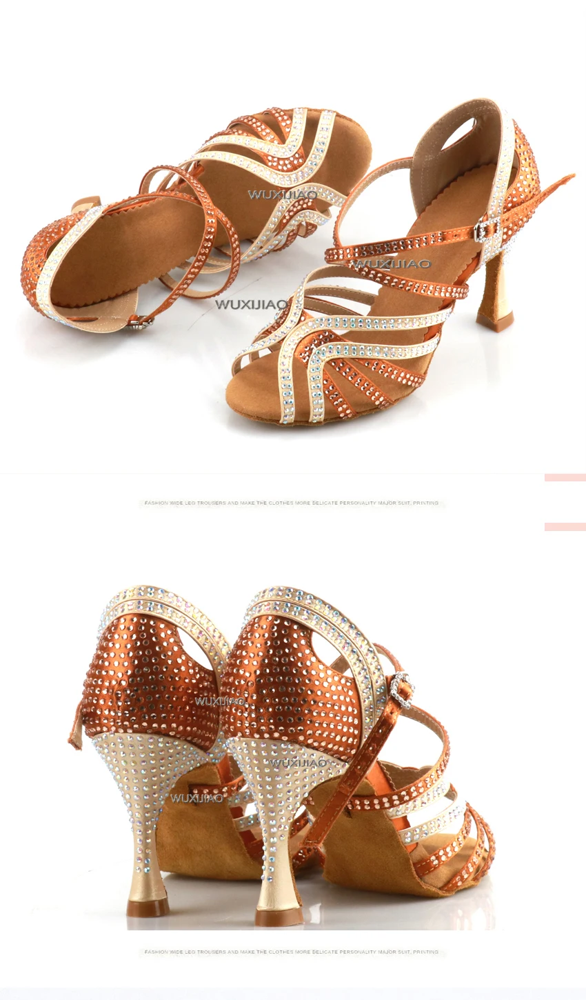 Женская обувь для латинских танцев WUXIJIAO, новая танцевальная обувь с уникальным дизайном, обувь для сальсы сандалии со стразами