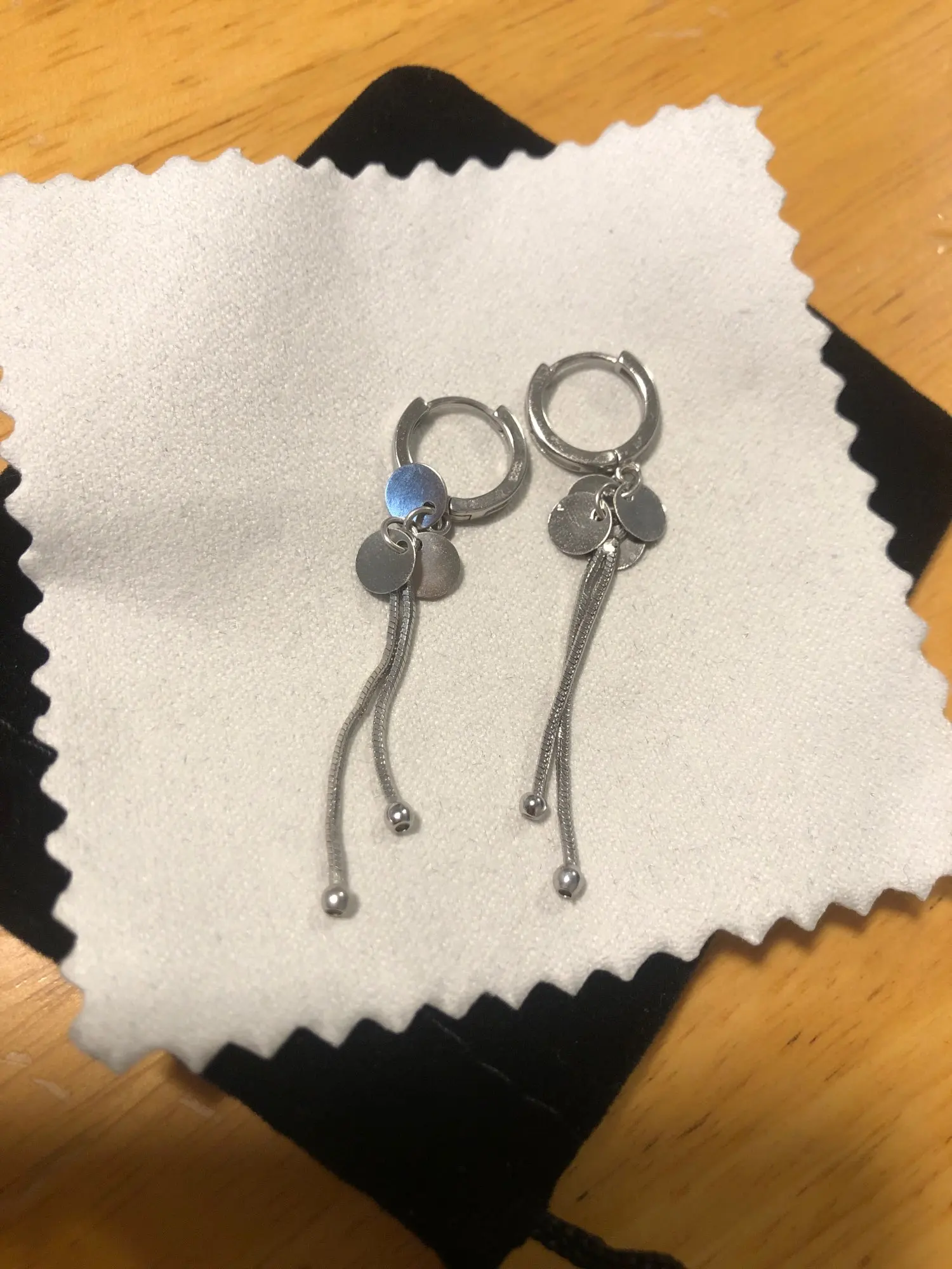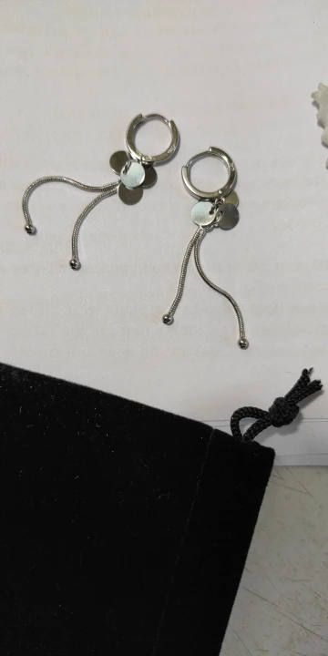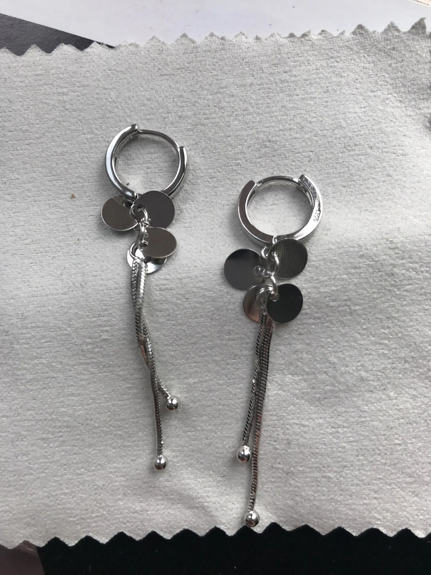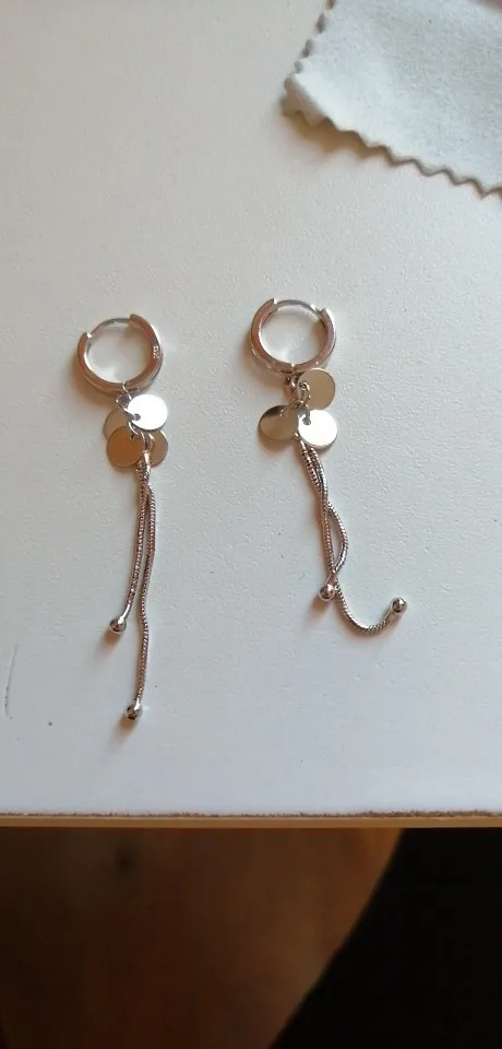 Милые , лёгкие сережки. Смотрятся как родированное серебро . Продавец положил в подарок бархатный мешочек и тряпочку. Спасибо.