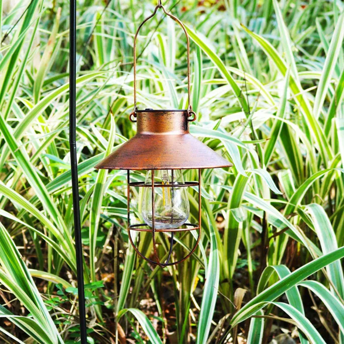 Солнечный Фонари лампа на открытом воздухе подвесная Солнечная лампа Винтаж металлические солнечные лампы с теплым белым шариком Эдисона для сада дворик крыльца