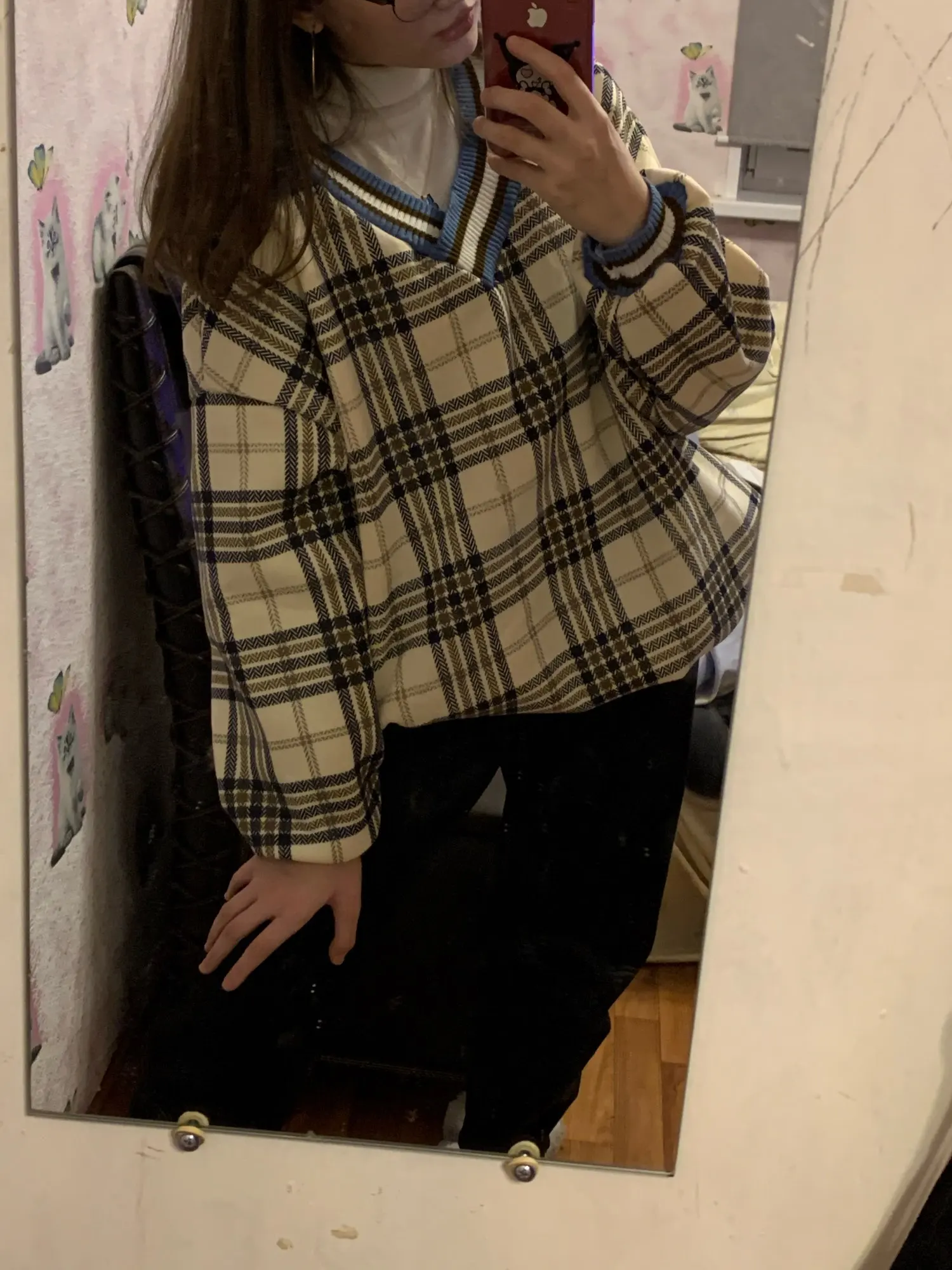 Зимние свободные шикарные клетчатые Осенние новые корейские топы с ...