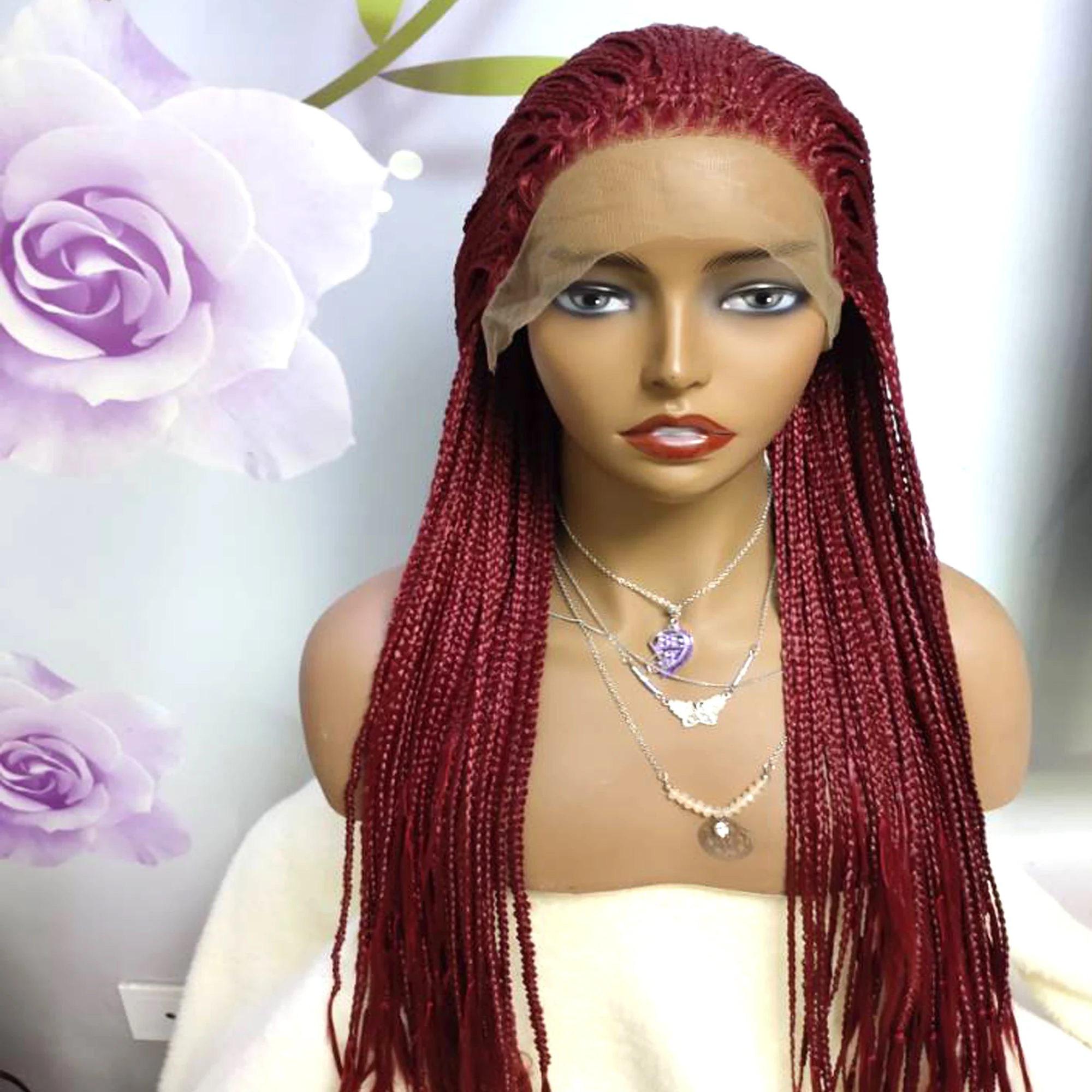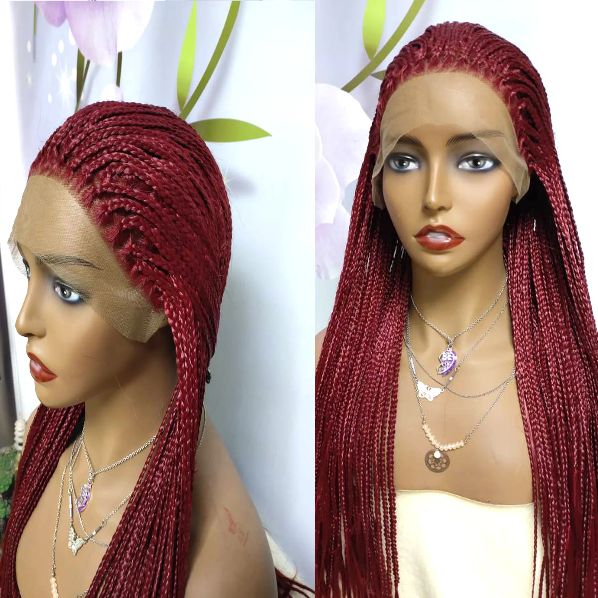 Парик с длинной косичкой, 26 дюймов, бордовый, 99J цвет, синтетические волосы, плетеные парики с дышащей шапочкой