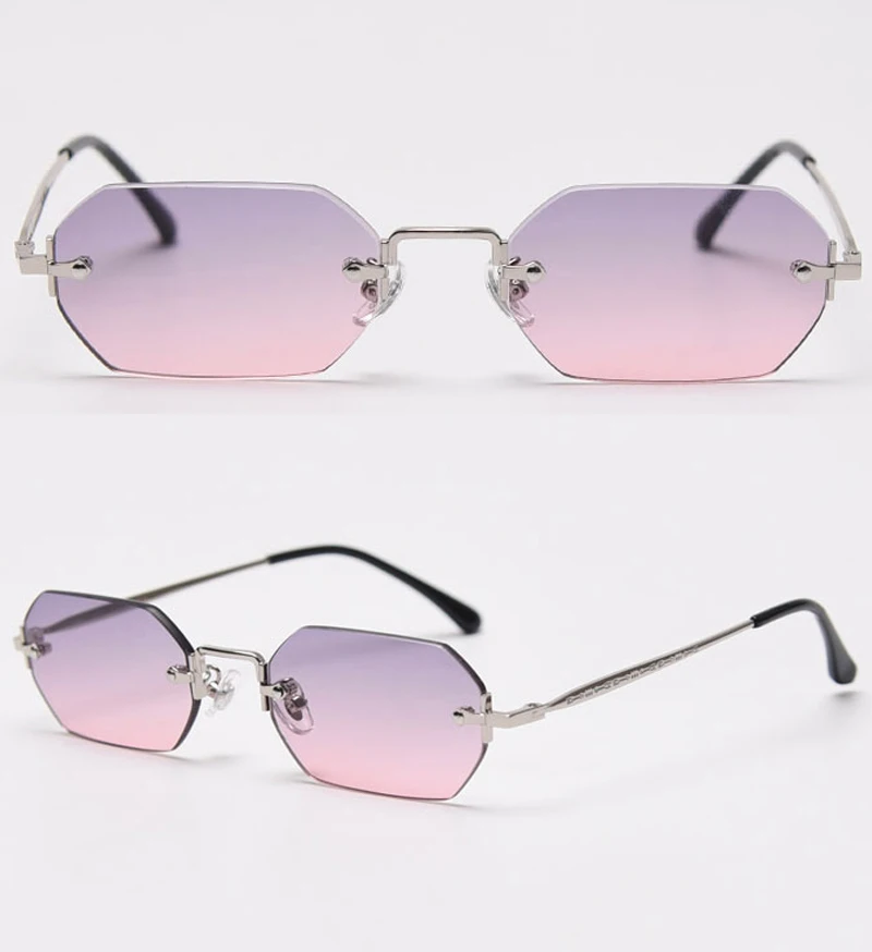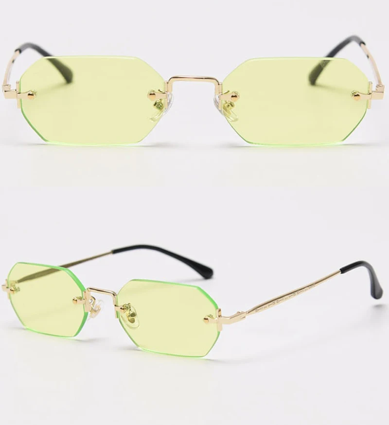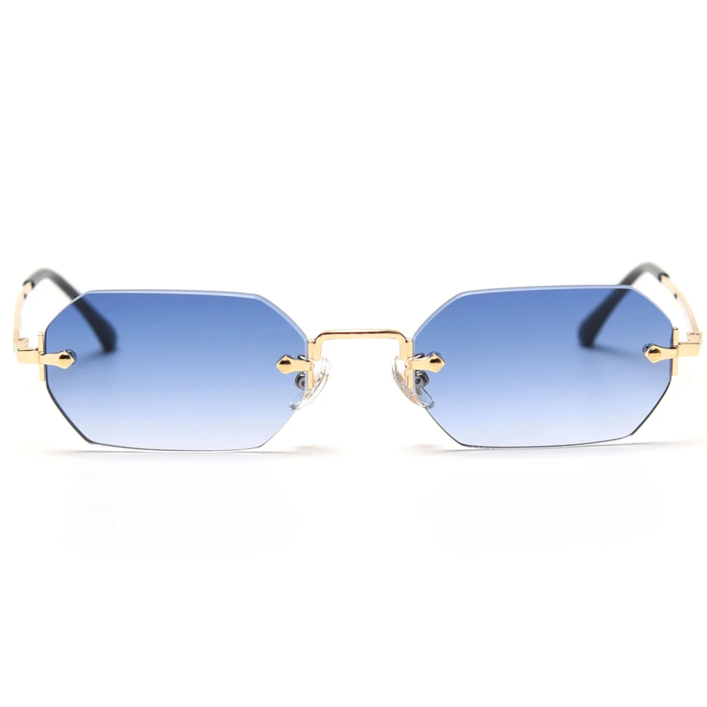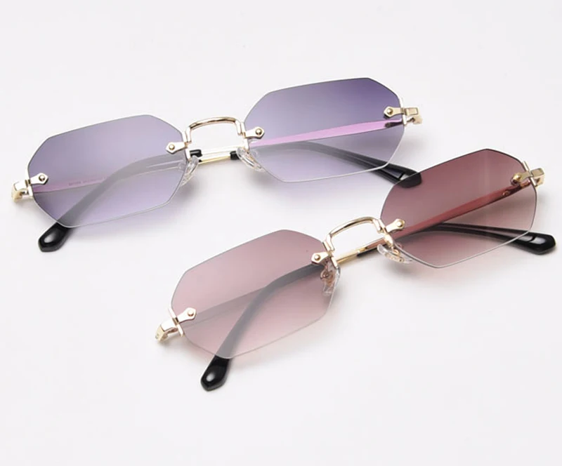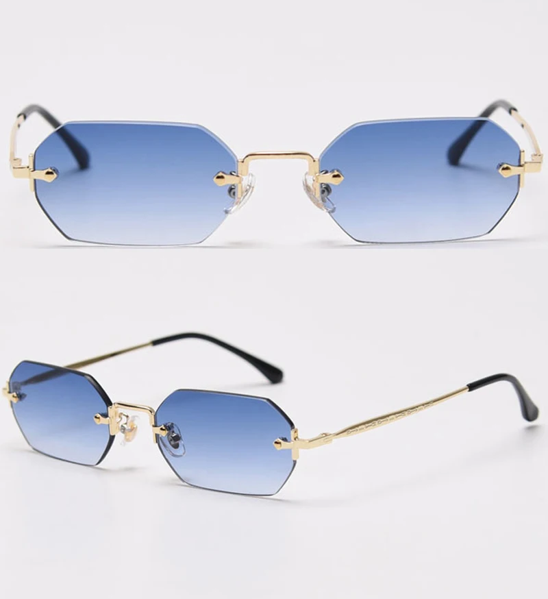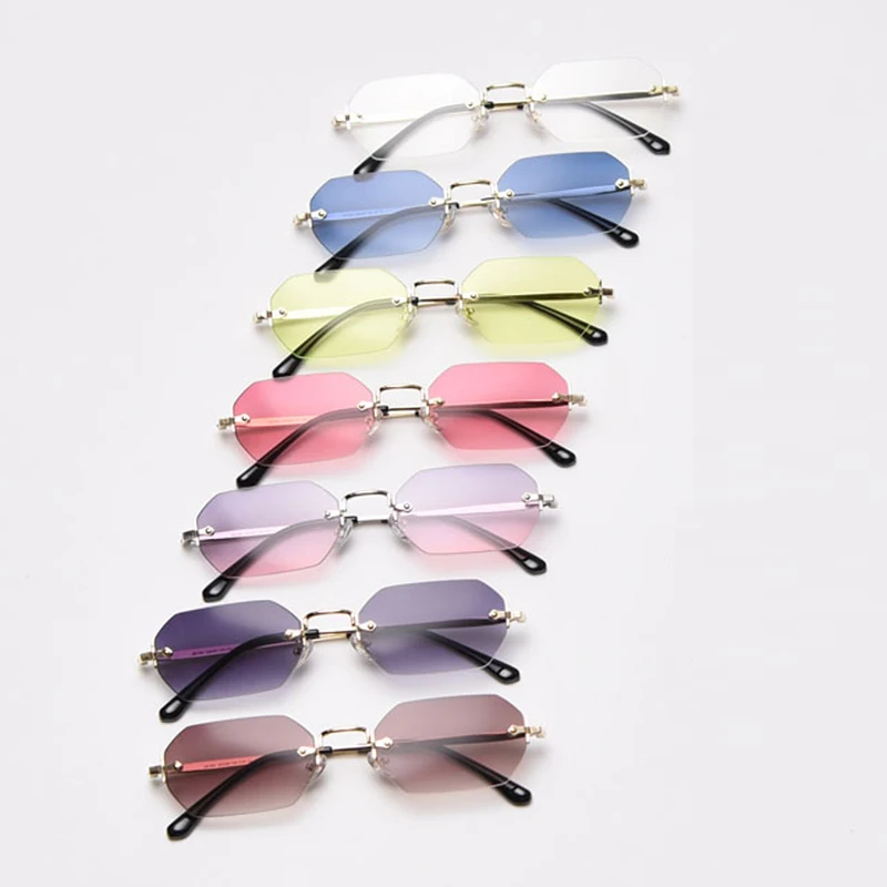 Солнцезащитные очки Peekaboo без оправы для мужчин и женщин, прямоугольные маленькие Восьмиугольные очки в металлической оправе, с золотистымисинимикоричневыми линзами uv400, 2021
