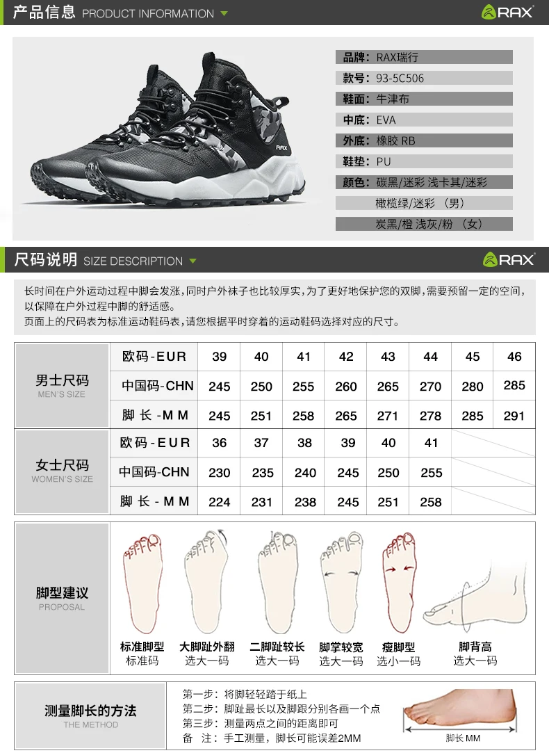 Пожалуйста, выбирайте европейский размер в соответствии с длиной стопы или длиной стельки. Перед выбором размера рекомендуем замерить длину своей стопы или длину стельки. Таблица размеров: Европейский размер 36 37 38 39 40 41 42 43 44 45 46 Размер CHN 230 235 240 245 250 255 260 265 270 280 285 Длина фона (см) 23 23,5 24 24,5 25,5 26 26,5 27 28 28,5 29