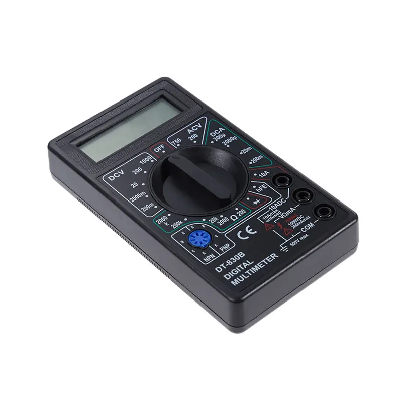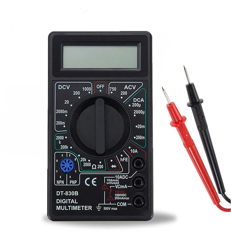 Особенности: 1,3 1/2 знака после запятой, 7-сегментный, 0,5 "Высокая ЖК-дисплей Дисплей. 2. Максимальный Дисплей: 1999, автоматический Полярный дисплей. 3. Маленький и компактный дизайн. 4. Защита от перегрузки на всех диапазонах. 5. Отбор проб 2-3 раза в секунду. 6. Тест на сборку диодов/температурный тест/Транзистор HFE Тест. Спецификация: 1. Модель: DT-830B 2. Диапазон измерения: 3. Максимальный ток переменного тока: 10A 4. Максимальный диапазон напряжения переменного тока: 1000 в 5. Максимальный диапазон напряжения постоянного тока: 750 В 6. Измерение сопротивления: Диапазон 200 Ohm-2000K Ом 8. Источник питания: аккумулятор 9 В (здесь не входит) 9. Цвет: черный/желтый 10. Размер: прибл. 123x67x20 мм/4,84x2,63x0,78 ''(Д * Ш * В) 11. Степень и точность шкалы: 12. Напряжение постоянного тока: 200 мВ 100 УФ ±(0.5% + 2) 2000мв 1МВ 20v 10mv 200 в 100 мВ 1000 в 1 В ±(0.8% + 2) 13. Напряжение переменного тока: 200 в 100 мВ ±(1.2% + 10) 750 В 1 в 14. Постоянный ток: 2000ua 1ua ±(1% + 2) 20ma 10ua 200мА 100ua ±(1.2% + 2) 10А 10мА ±(2% + 2) 15. Сопротивление: 200Ω0.1Ω ±(0.8% + 2) 2000Ω1 20kΩ10 200kΩ100 2000k10001000Ω ±(1% + 2)