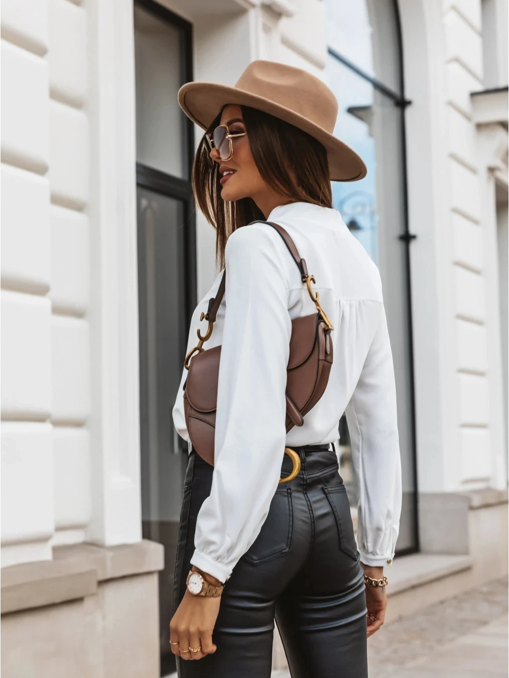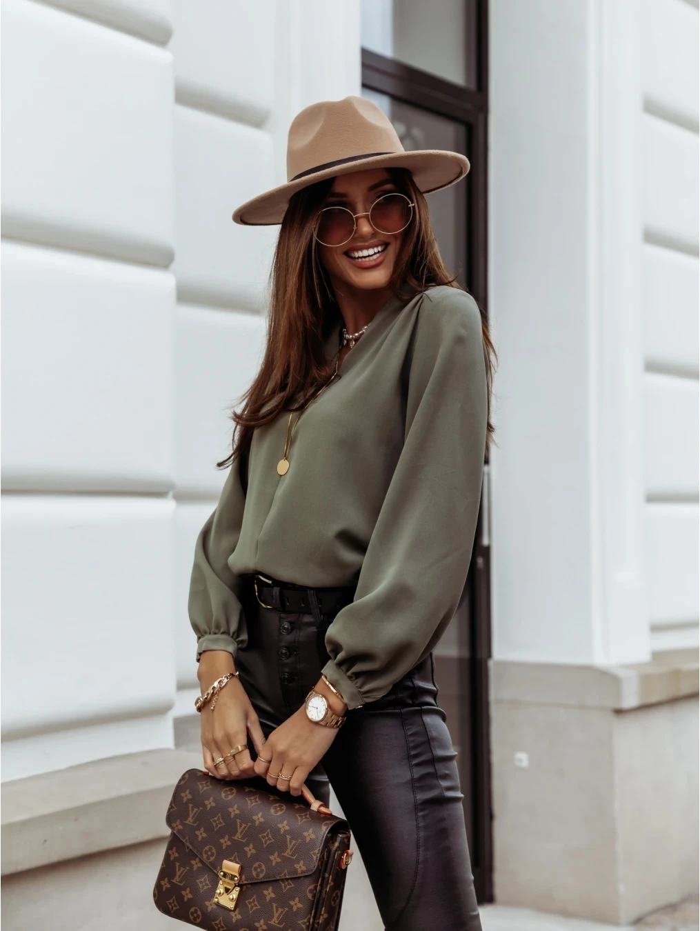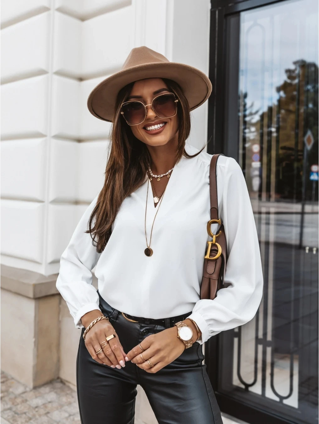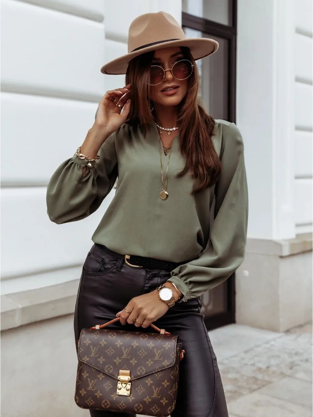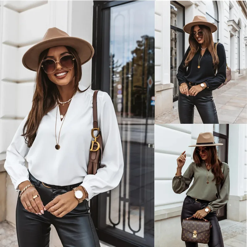 Блузка женская однотонная с V-образным вырезом, пикантный повседневный элегантный топ на пуговицах, уличная одежда, рубашка для офиса