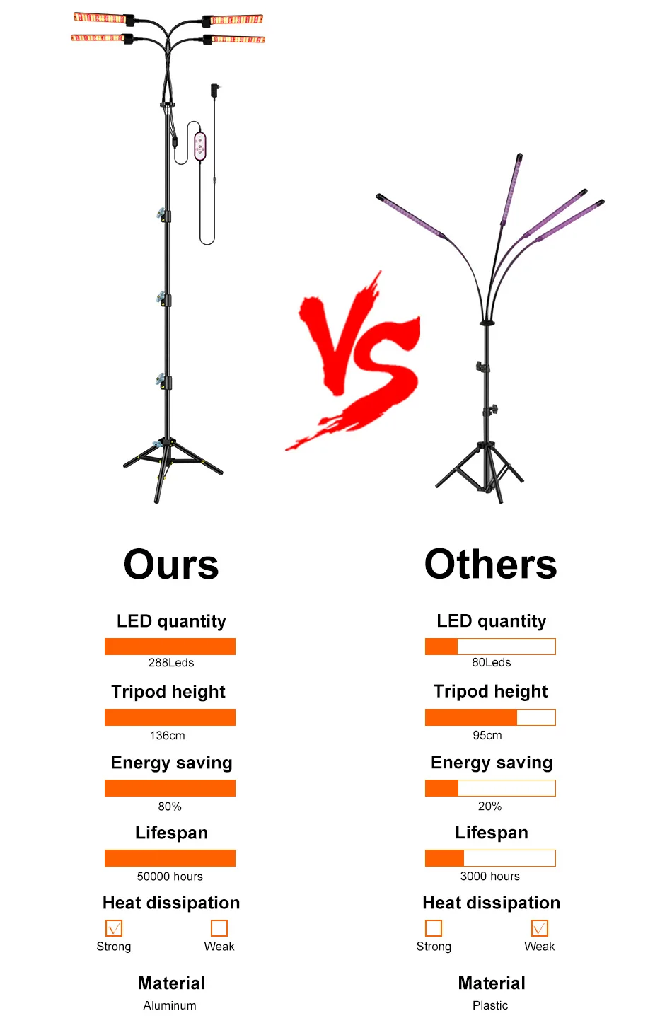 【Регулируемая высота】Высоту штатива можно регулировать в соответствии с потребностями роста растений, до 136 см