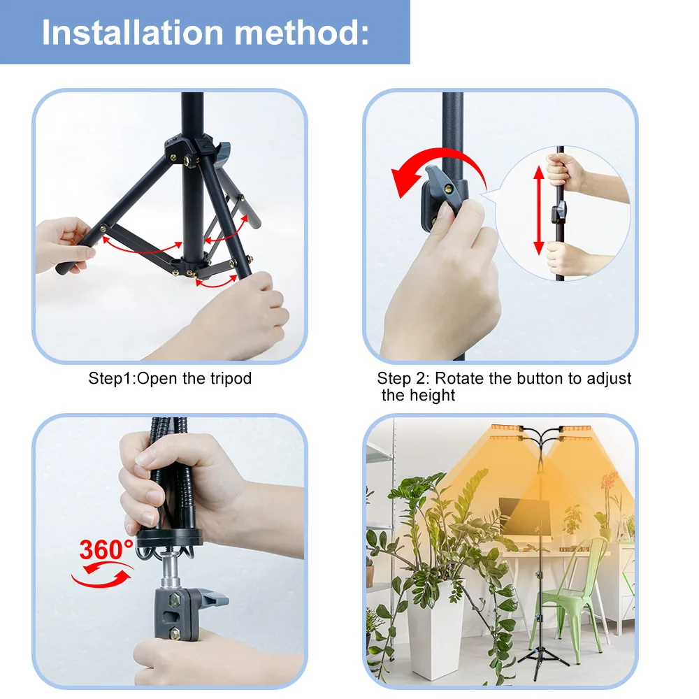 【Произвольный изгиб 】 Гибкая Рычажная шея на 360 °, произвольный изгиб нелегко сломать, можно регулировать высоту освещения и направление светильник в соответствии со стадией роста растений