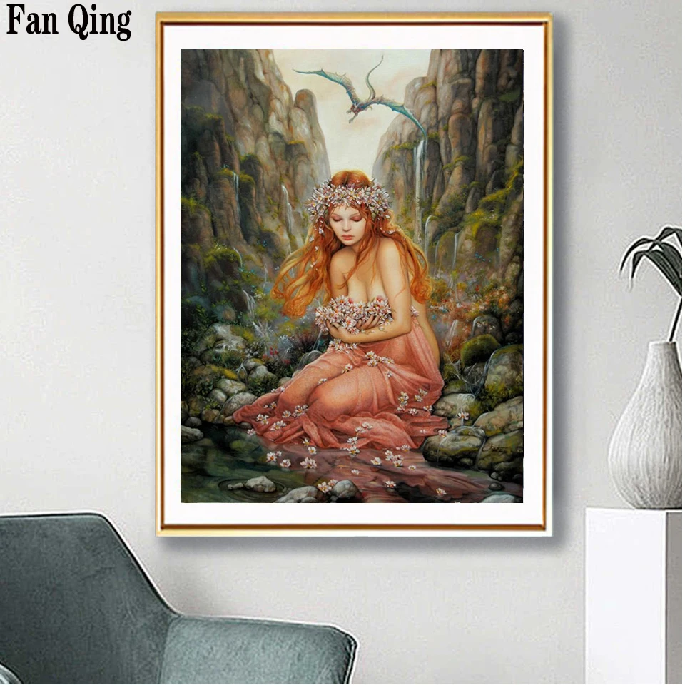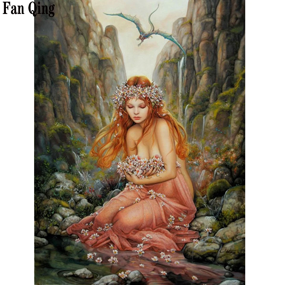 Алмазная 5D картина сделай сам, картина с изображением гор, цветов, феи, девушки, полностью квадратные и круглые стразы, 3D вышивка крестиком, мозаика ручной работы, подарок