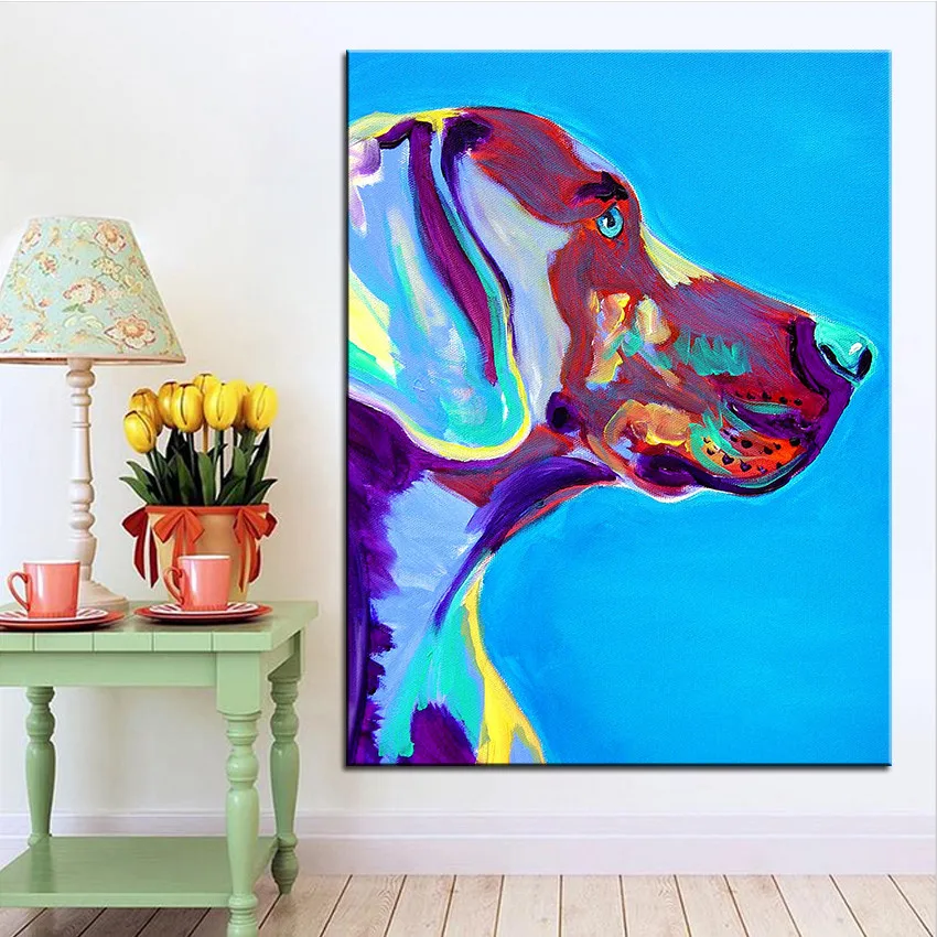 Картина маслом большого размера weimраннер, картина на синюю стену, домашняя декоративная картина на стену для гостиной, пейнтвальная рамка