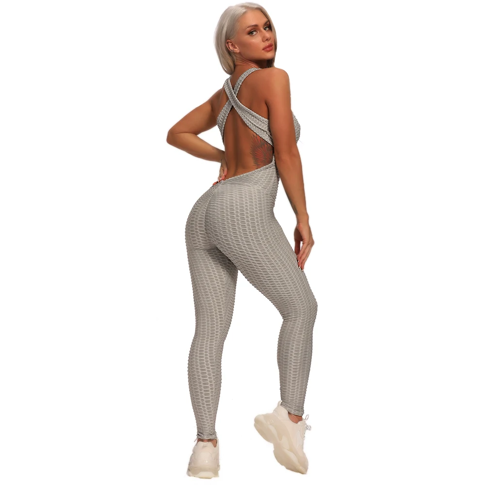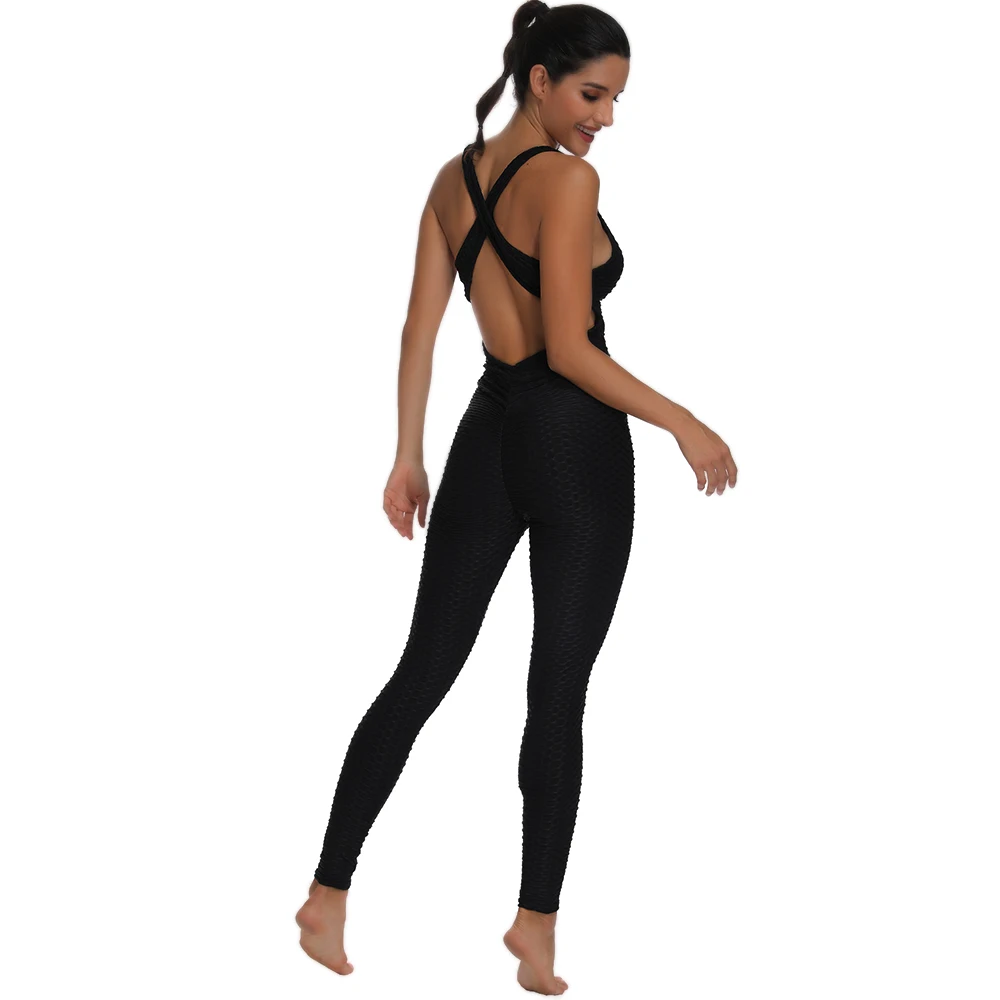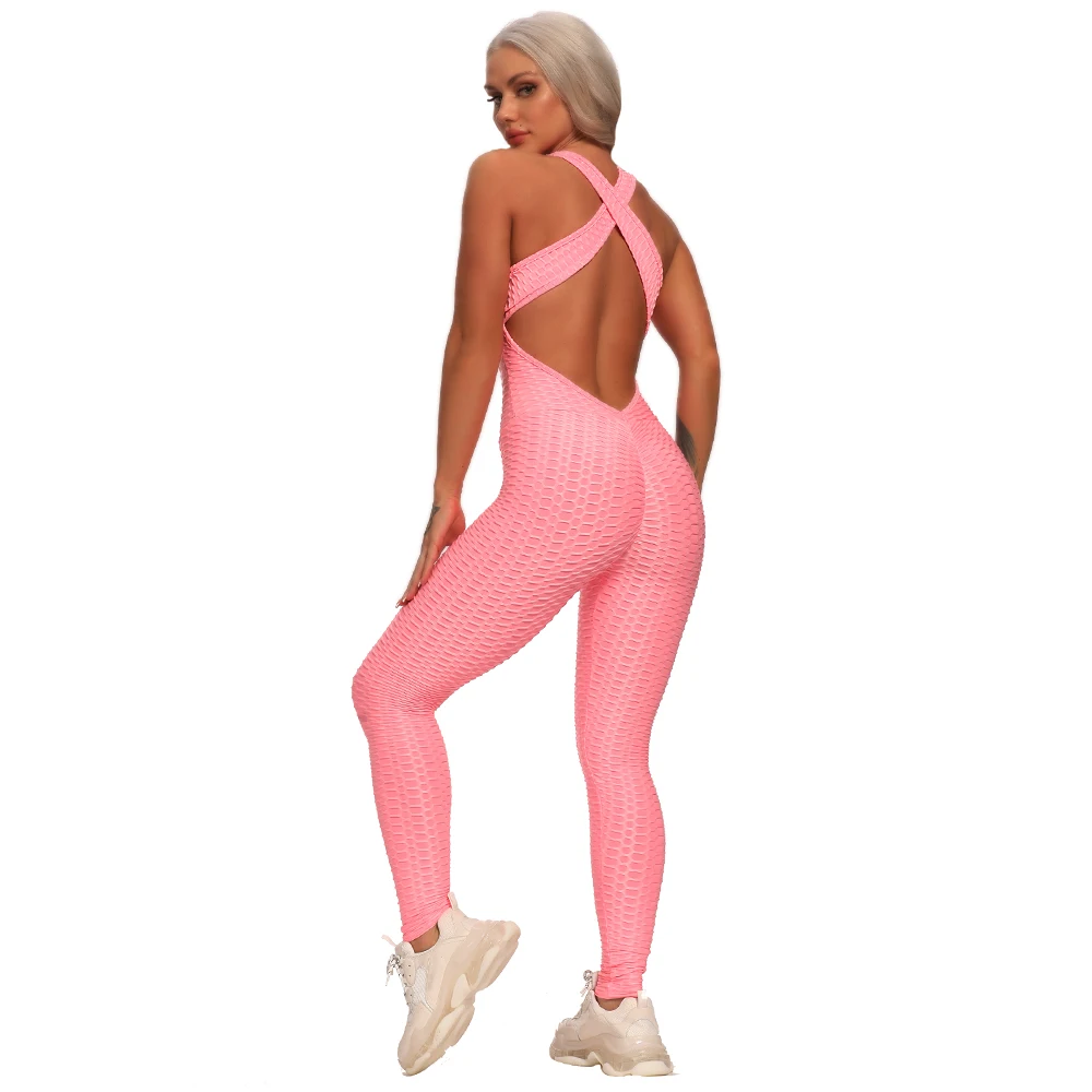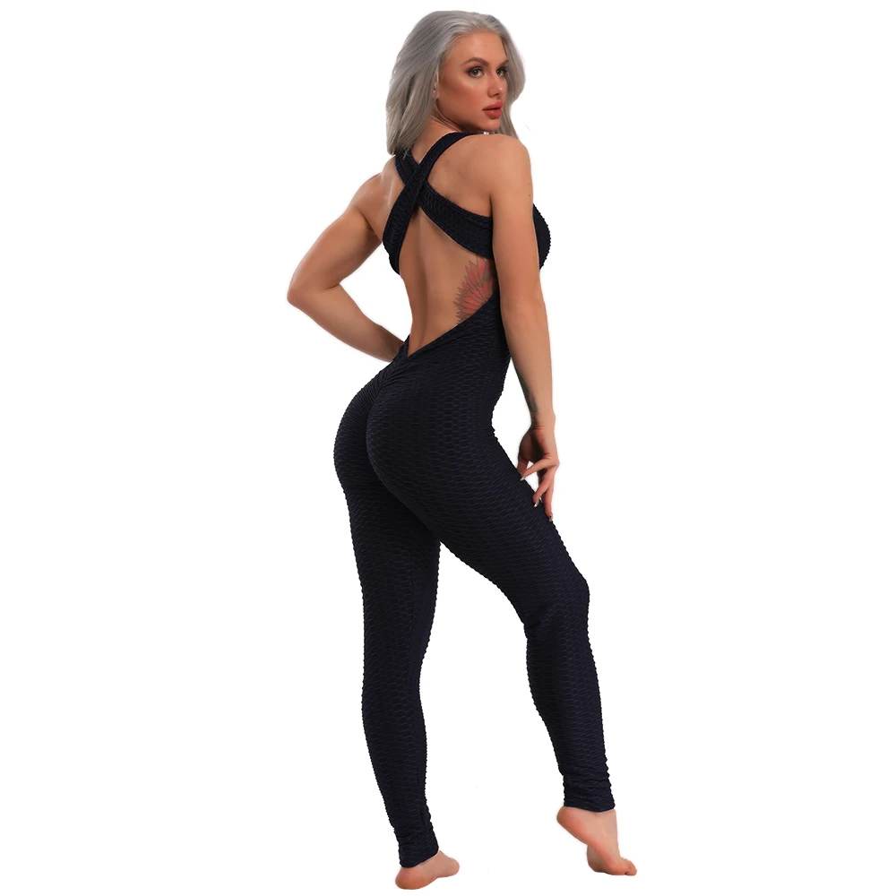 Женский спортивный костюм без рукавов, жаккардовый спортивный костюм с открытой спиной для фитнеса и тренировок