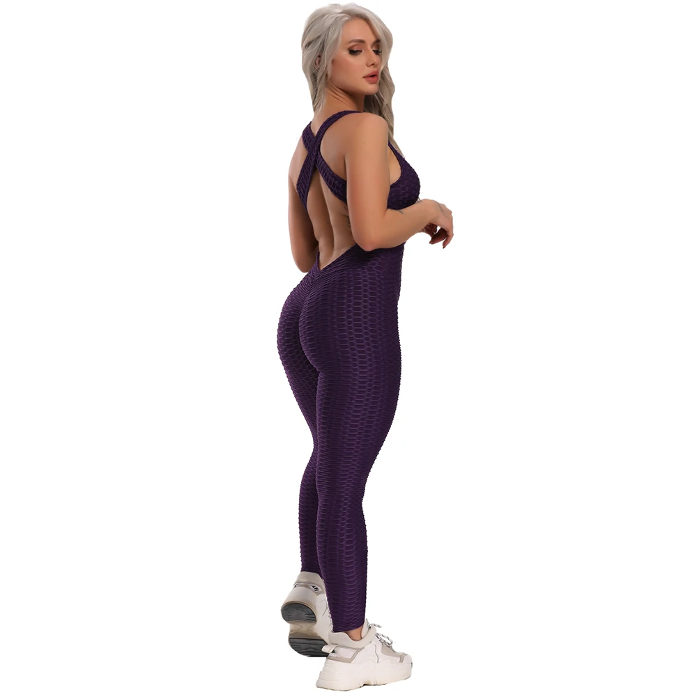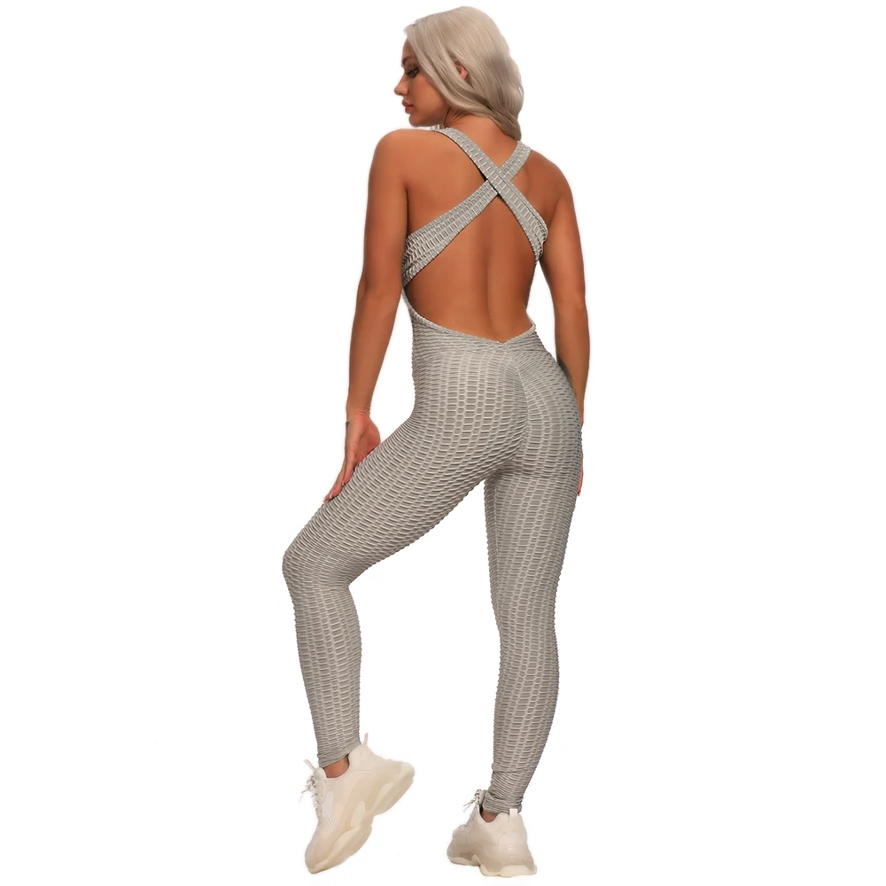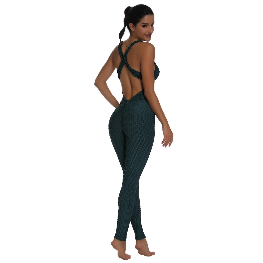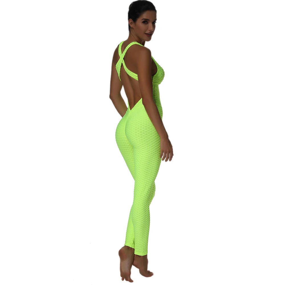 Женский спортивный костюм без рукавов, жаккардовый спортивный костюм с открытой спиной для фитнеса и тренировок