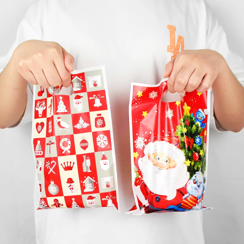 20 шт. портативные подарочные пакеты с рождественской тематикой, для конфет, печенья, мешки для пирожных подарочная упаковка, товары для выпечки, рождественские украшения для детей
