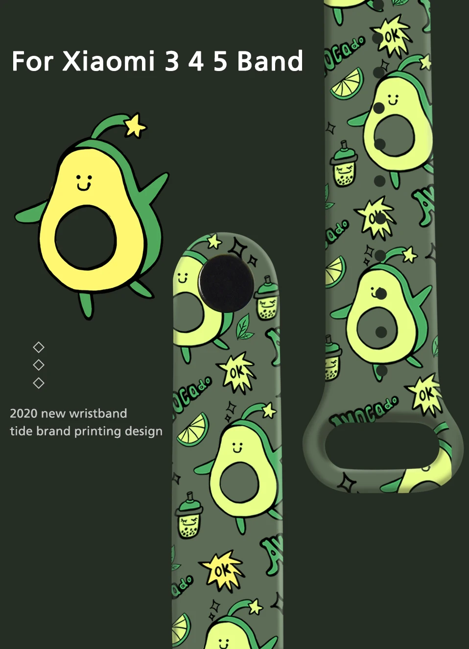 Ремешок для гитары с авокадо для Xiaomi Mi Band 6, 5, 4, 3, сменный...