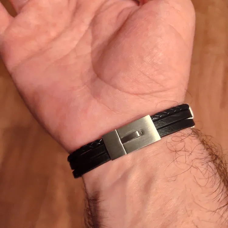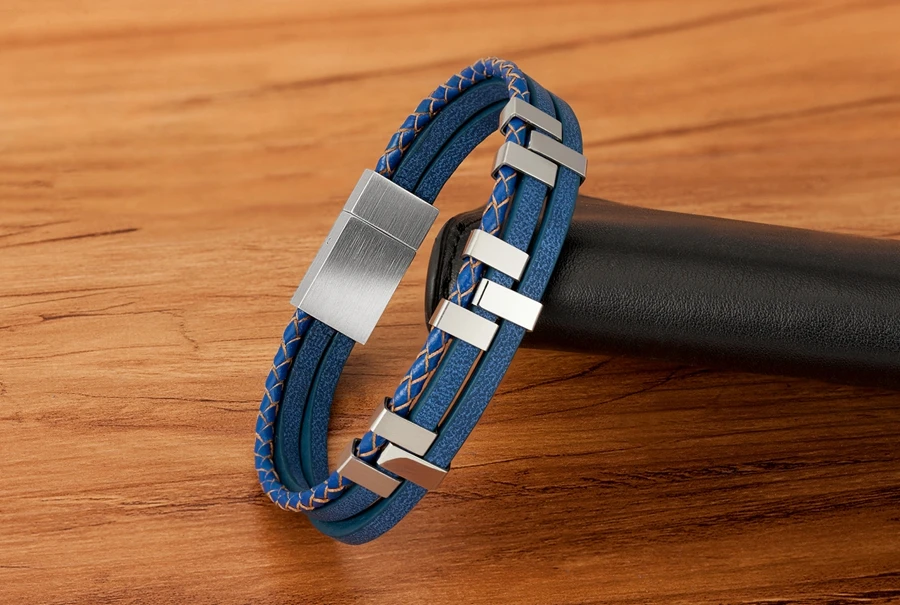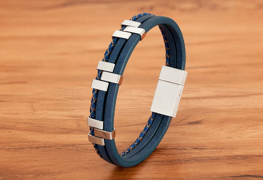 Мужской кожаный браслет, классический многослойный браслет из нержавеющей стали, 3 цвета на выбор