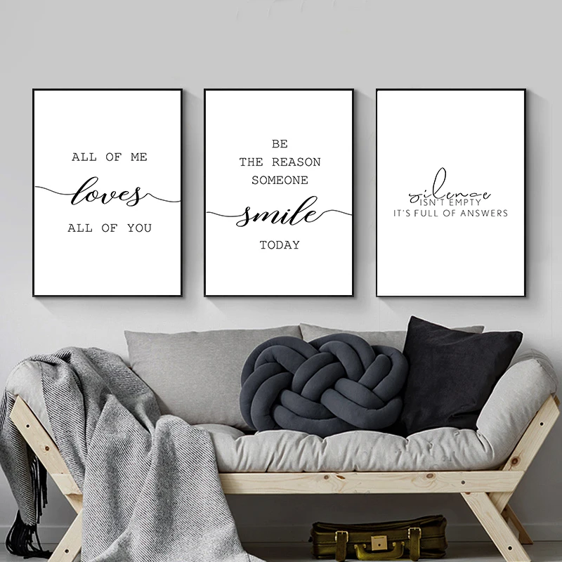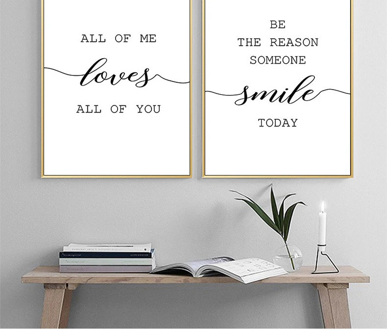 Черно-белый холст Художественная Живопись Любовь цитаты скандинавск...