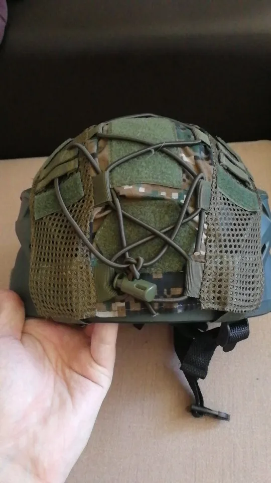 Отличный чехол, ч ним страйкбольный шлем приобретает в виде. Без него кажется пластиковой каской, с чехлом уже похож на полноценный шлем. тема очень годная, советую! Крепится достаточно легко, на липучки как с внешней так и с внутренней стороны шлема. Нужна была черная, но полностью черной нет, взял с камуфляжем тесным, его почти не видно и чехол фактически черный. Все отлично!
