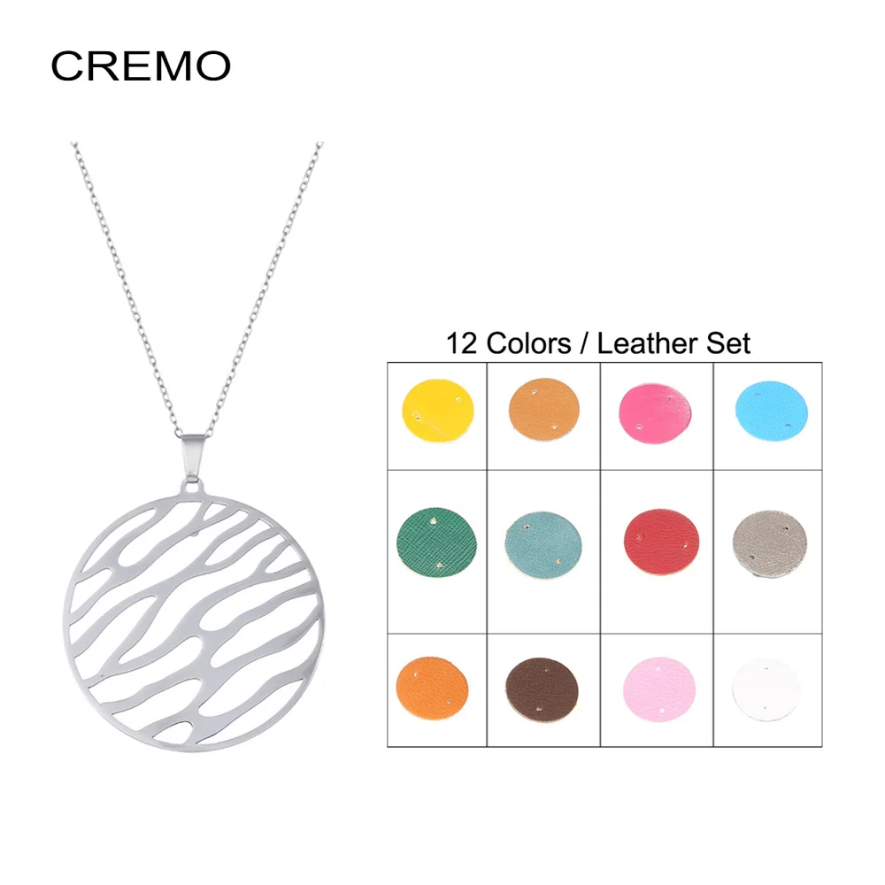 Женское Ожерелье с круглым кулоном Cremo, обратимое кожаное колье из нержавеющей стали, жоржет, 2019