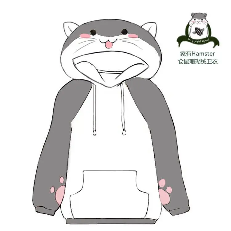Harajuku японский Kawaii толстовки для женщин кофты 3D ушками милые Shiba Inu Doge прошитой подошве; Теплые зимние плюшевые тапочки милый хомяк аниме Толстовки с капюшоном