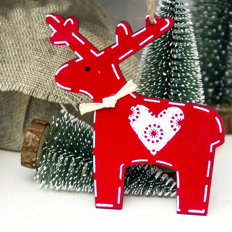 Деревянные Подвески-украшения для новогодней елки, в виде лося, оленя, 3 шт.