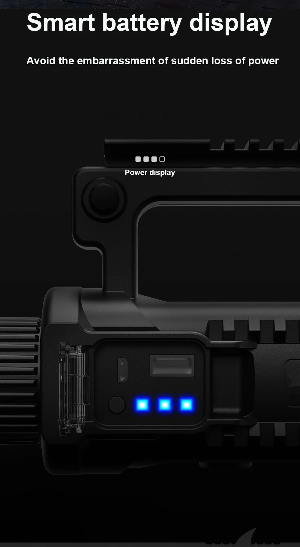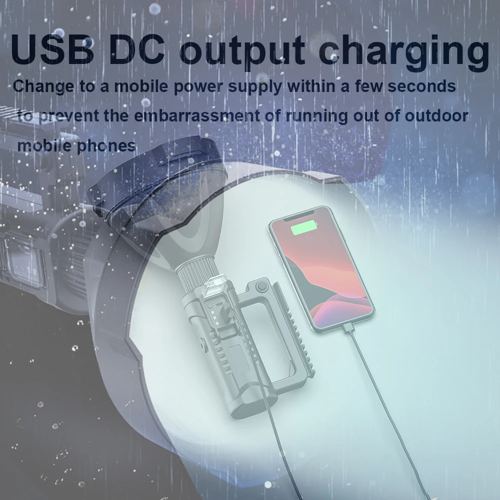 * Супер яркий: обеспечивает супер яркий светильник, расстояние луча превышает 1500 метров. * Мобильная мощность: встроенный литий-ионный зарядный светильник большой емкости с usb-портом, вы можете быстро и легко зарядить устройство через индикатор питания * Водонепроницаемый. Он может предотвратить брызги во всех направлениях и подходит для внутренней или наружной среды и суровых погодных условий. * Многофункциональность: супер яркие фары, большое расстояние освещения и большое расстояние. Его можно использовать как поисковый светильник, Кемпинговый светильник, рабочий светильник и т. д. * Широкое применение. Он легко переносится и может быть оснащен базой, которая очень подходит для активного отдыха, например, пеших прогулок, кемпинга, охоты, приключений, ночной рыбалки и т. д.