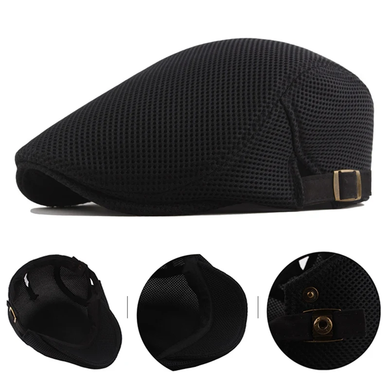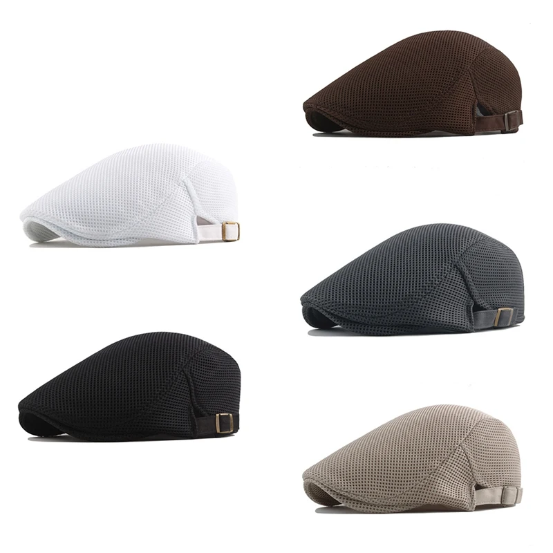 Берет хлопковый мужской, повседневная сетчатая Кепка на плоской подошве, однотонная дышащая Регулируемая Классическая Летняя модная шапка с утконосом