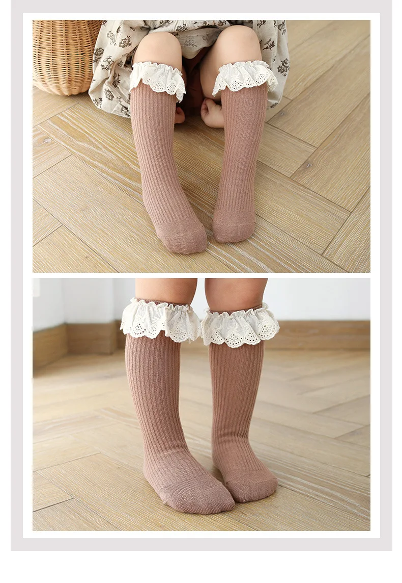 Гольфы для маленьких девочек длинные детские мягкие хлопковые кружевные носки принцессы гетры с оборками для девочек 0-8 лет