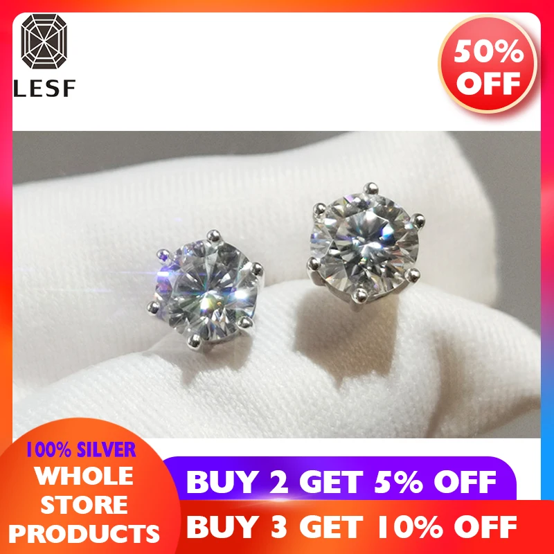 LESF 0,5 Ct Круглый моиссан алмаз 925 серебряные серьги для женщин,...