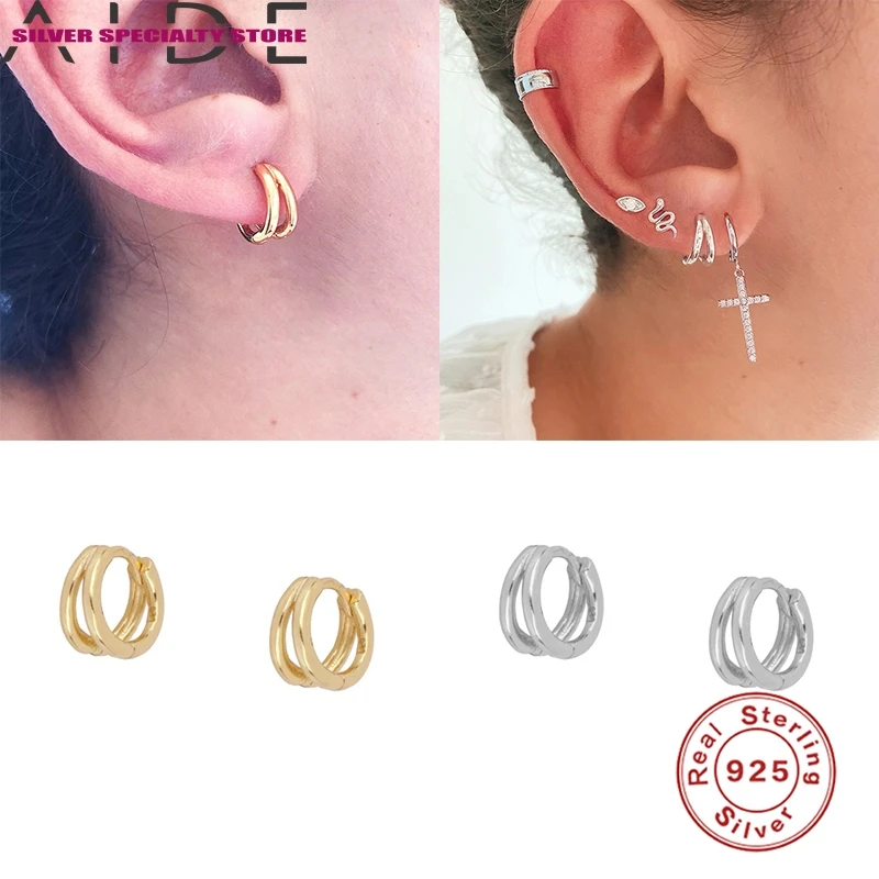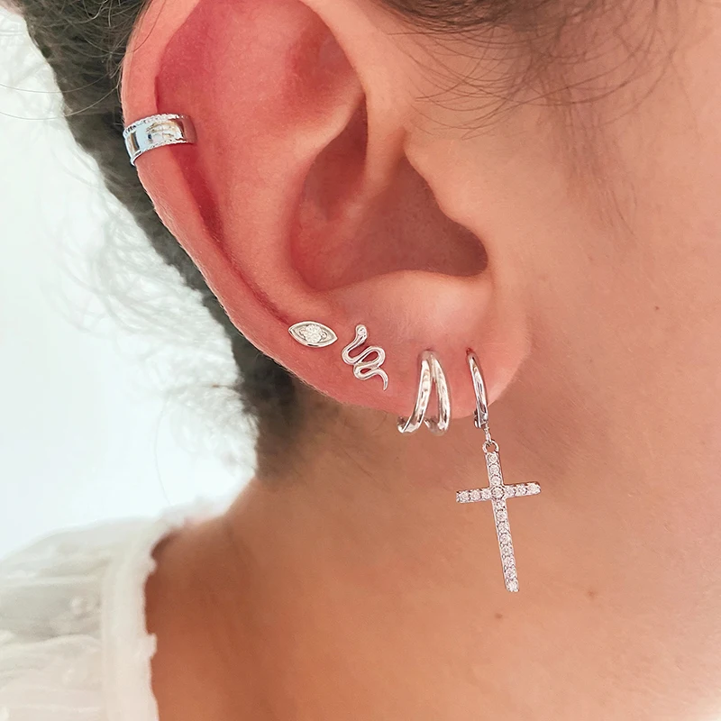 Серьги-кольца женские из серебра 925 пробы с фианитами