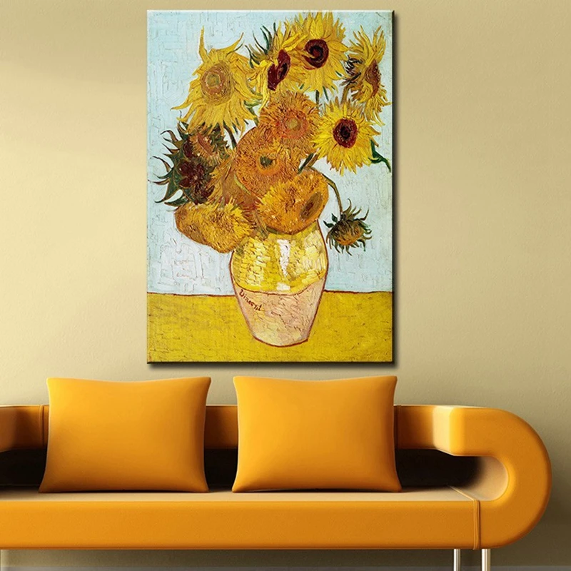 Картина на стену картина маслом Винсент Ван Гог Ваза С ДВЕНАДЦАТЬЮ ПОДСОЛНУХАМИ Импрессионистский художник печать на стене картина с рамкой