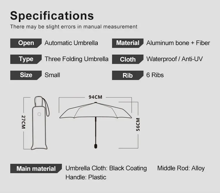 Новый роскошный ультралегкий Зонт от дождя для женщин, полностью автоматический 3складной бизнес зонтик, 6 костей, маленький зонт для путешествий, подарок, зонт