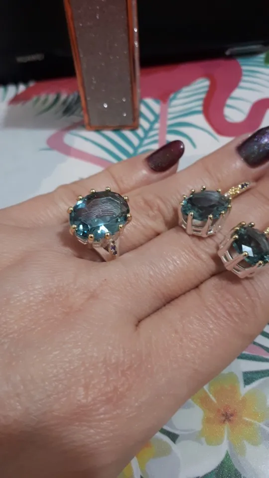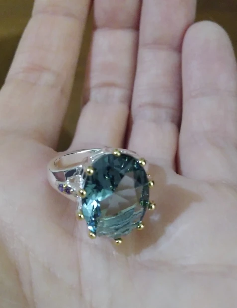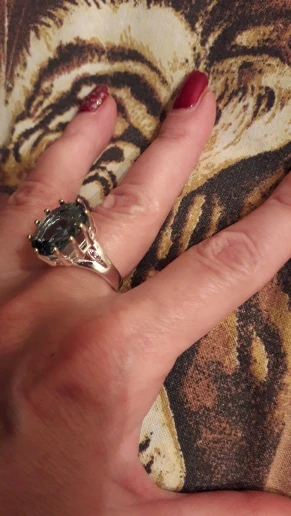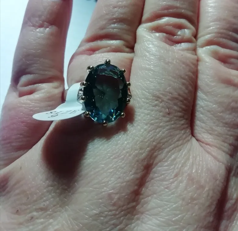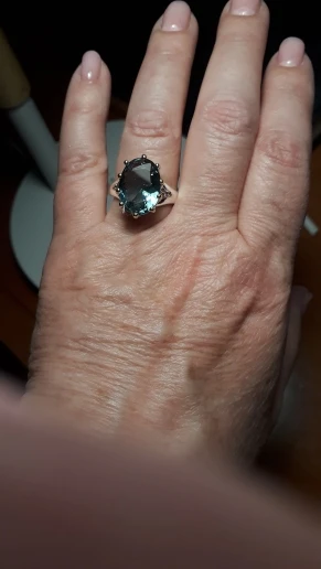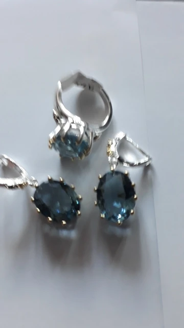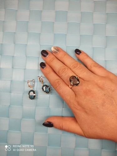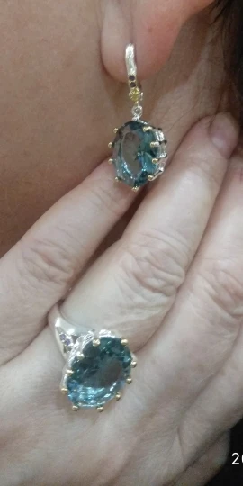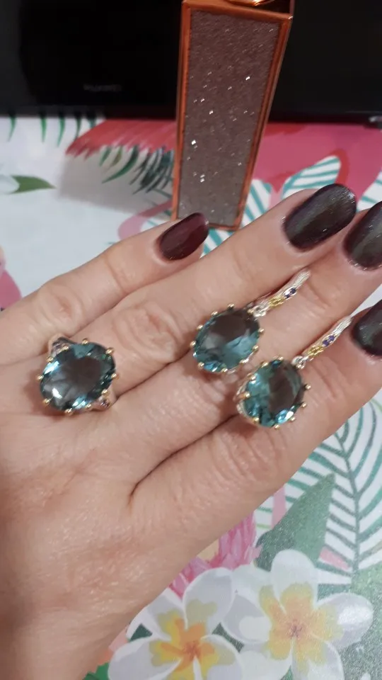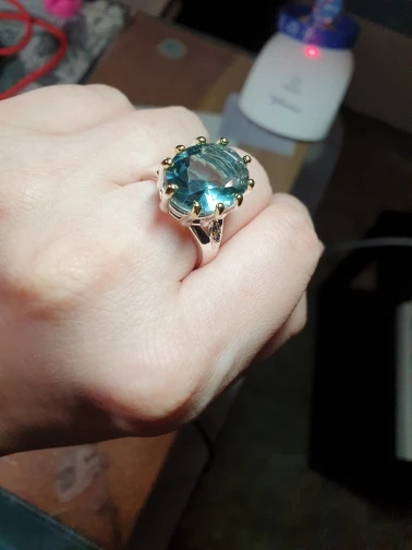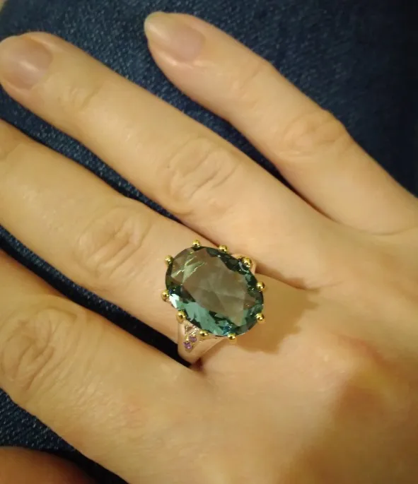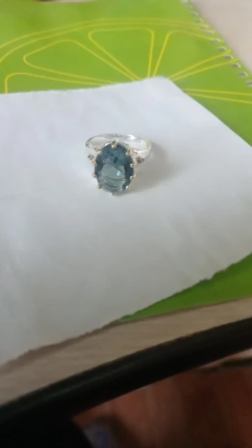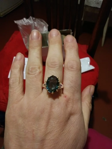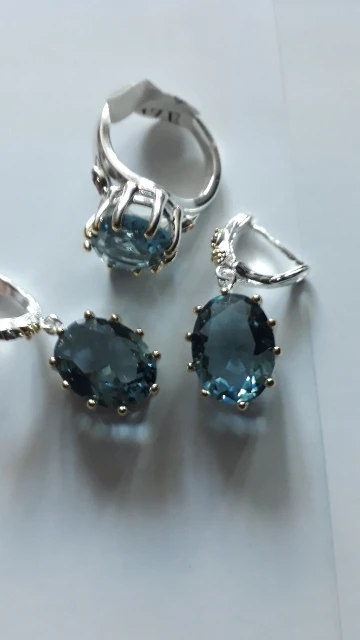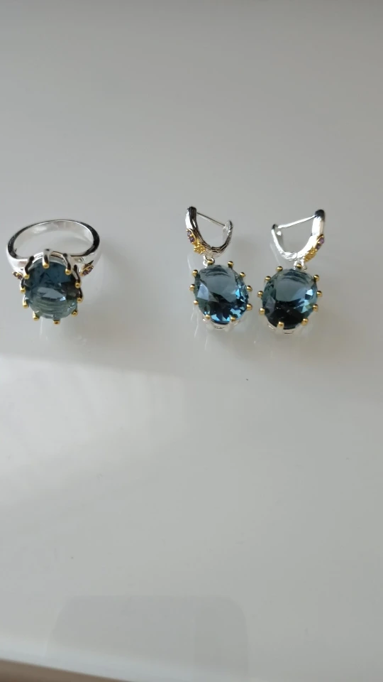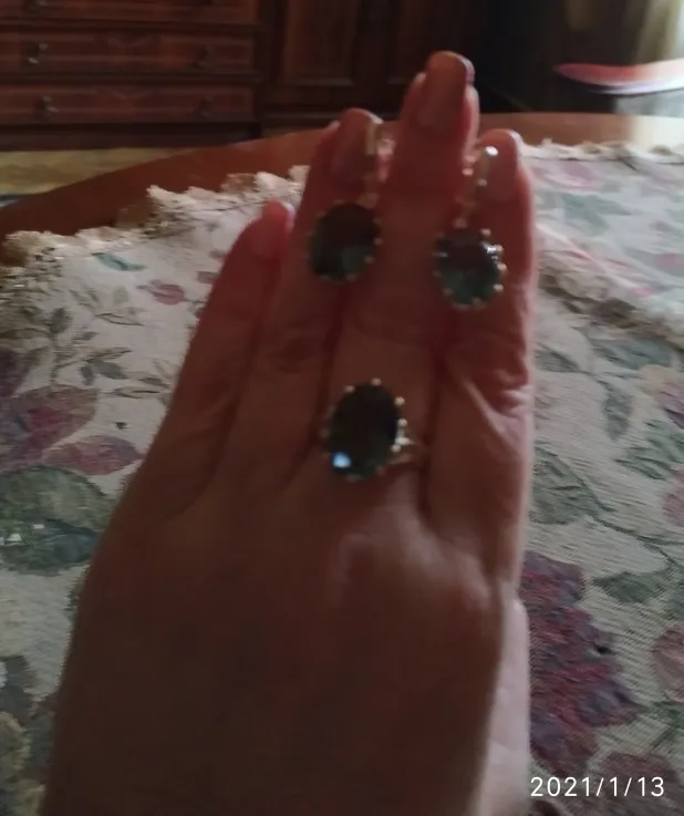 Брала кольцо в комплекте с серьгами. Мне всё в нём понравилось. Цвет камня необычный, прозрачный, красиво сверкает. Размер не сильно большой, но и немаленькие. Само кольцо немножко маломерит,примерно на полразмера.