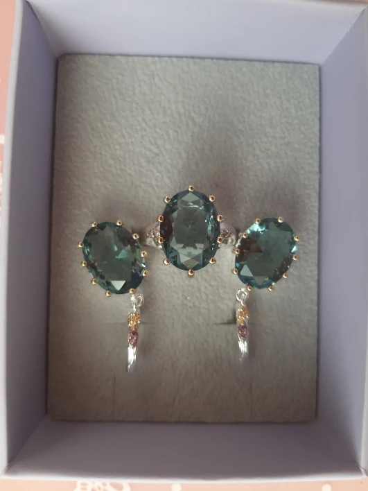 Нереально красивый комплект. Камни чистые, качество исполнения на высоте. Очень красиво и качественно. Доставка быстрая, упаковка серьезная, в коробке и уплотнено дутым целлофаном.