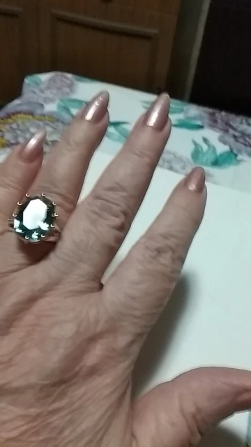 Красивое большое кольцо, изготовлено безукоризненно, камень блестит и сияет, очень понравилось, приобрела уже несколько изделий, очень радуют скидки и покупки за монетки, продавцу большое спасибо. Доставка быстрая, упакованы изделия в коробку с воздушными подушечками