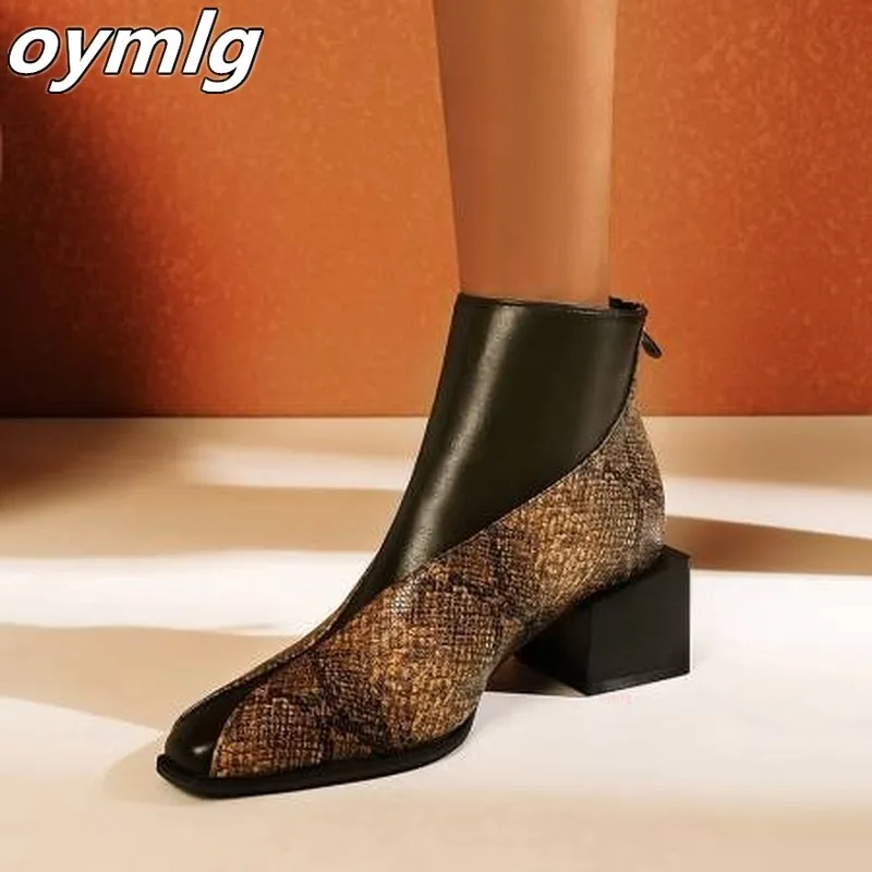 Ботинки осень-зима женские черно-белые коричневые сапоги из змеиной кожи для женщин на толстом каблуке; Женские слипоны на плоской подошве; Обувь; Bota Feminina