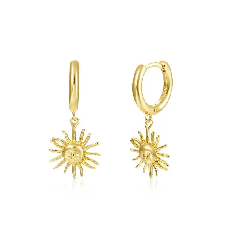 Автоклав 925 стерлингового серебра серьги-подвески для женщин в форме солнца геометрический золотистый серьги, ювелирные украшения, женские серьги W4
