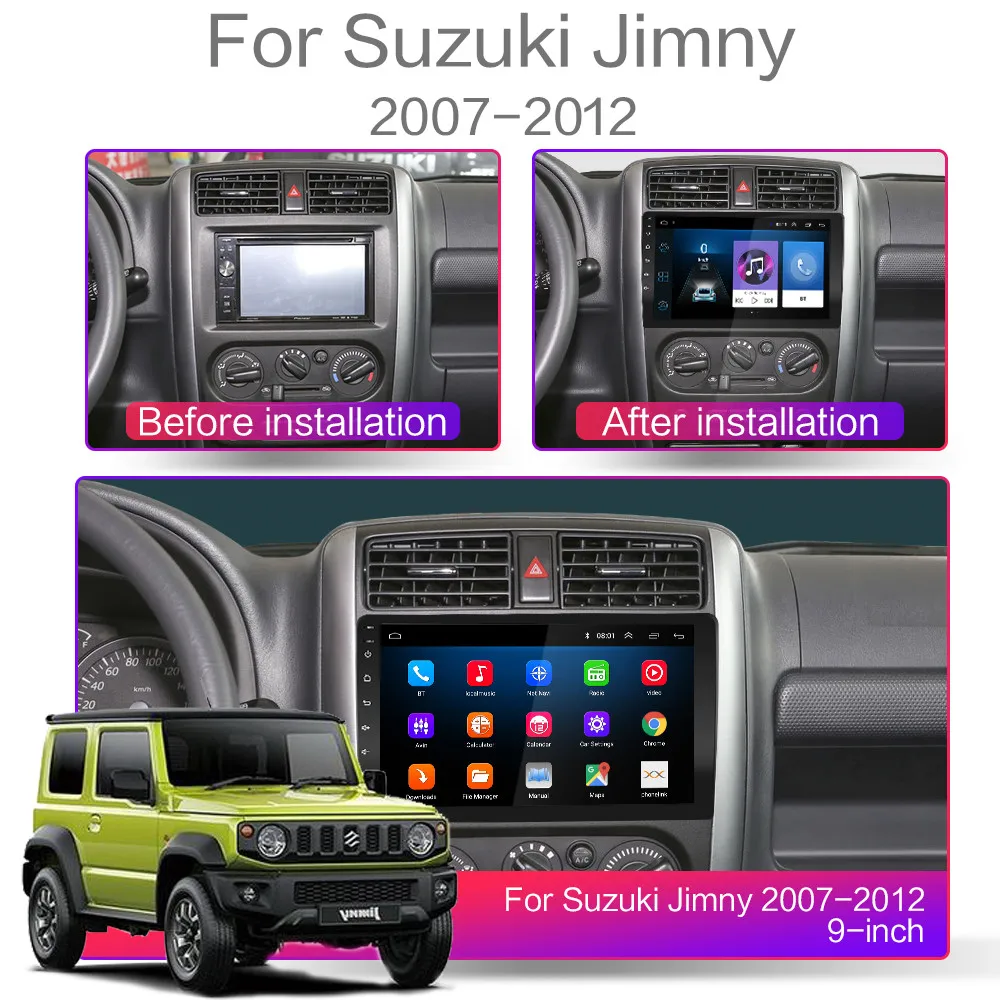 Для Suzuki Jimny 2007 2008 2009 2010 2011 2012 1, 4-х ядерный конфигурация включает в себя (Оперативная память + Встроенная память): 1 Гб + 16 ГБ/2 ГБ + 16 ГБ/2G + 32G / 4G-SIM-3560-2G + 32G [дополнительно]; 2, 8-ядерный конфигурация включает в себя (Оперативная память + Встроенная память): 7260L-2G + 32G / 7260L-4G + 64G / 4G-SIM-5760-2G + 32G / 4G-SIM-5760-4G + 64G / 4G-SIM-TS10-4G + 64G/4g-sim-ts6g на выбор + 128 3, 4-х ядерный содержит: версия: Android 8,1; Четырехъядерный процессор MTK8227 / Cortex-A7 Поддержка автомобиля logo5; Sfactory пароль: 8888 Разрешение: HD 2.5D,1024*600; Не поддерживает функцию AM, функцию RDS; Обычная посылка WiFi поддерживает функцию видеовыхода; Версия 3560-4G-SIM-WiFi: версия: Android 6,0; Поддерживает DSP; Не поддерживает функцию видеовыхода; 4, 8-Core содержат: версия: Android 9,0 или Android 10; Восемь ядер: CPU Quad core и GPU Quad core соответственно; Поддержка автомобиля logo5;Sfactory пароль: 8888; Разрешение: HD 2.5D,1024*600; Версия 7260L-WIFI: поддерживает DSP, функции; Не поддерживает видеовыход; 4G-SIM-5760-WIFI и 4G-SIM-TS10-WIFI версия: поддерживает функции DSP, Carplay, сплит-экрана; Не поддерживает видеовыход; 5. Операционная система Android может установить приложение Google Play store Skype Facebook youTube Twitter и т. Д.; 6. Поддержка: радиостанция, Bluetooth Вызов, Bluetooth музыка, управление рулевым колесом, встроенный WiFi, MP3, видео музыка (MPG, AVI), навигация, видеовыход, зеркальная связь, USB 4G LTE WIFI ключ и другие функции; Поддержка OBD (опционально) Поддержка DAB + (опционально)