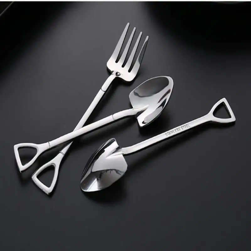 Вилка из нержавеющей стали для мороженого, вилка с длинной ручкой с рисунком лопатки для перемешивания кофе, золотистого, серебристого цветов на выбор, 1 шт.