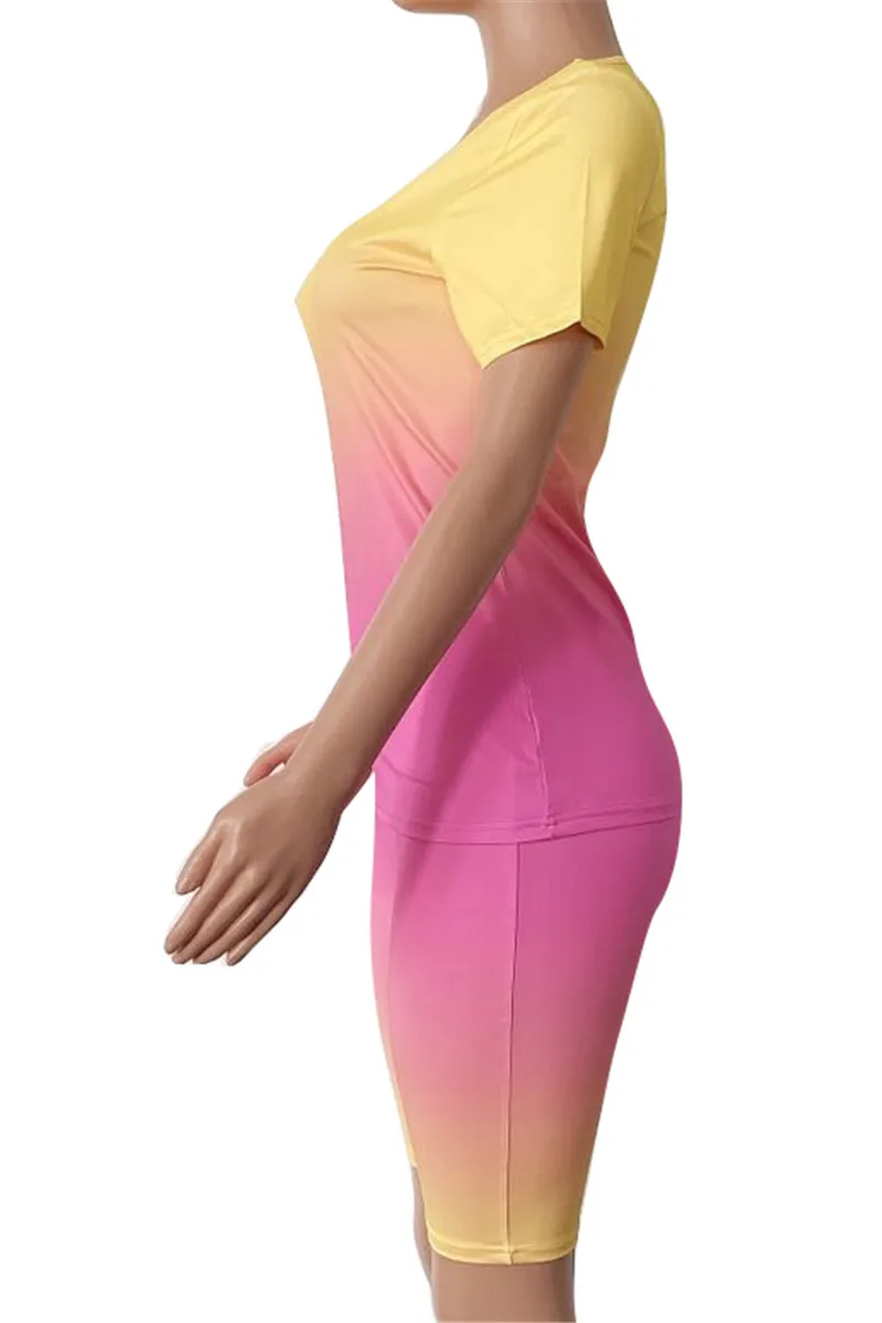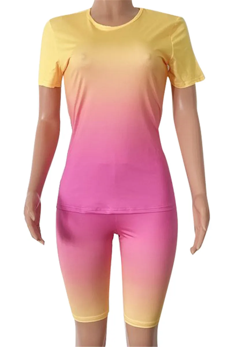 Женский Повседневный Спортивный костюм с градиентом, укороченный то...