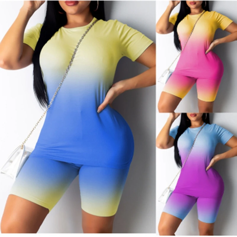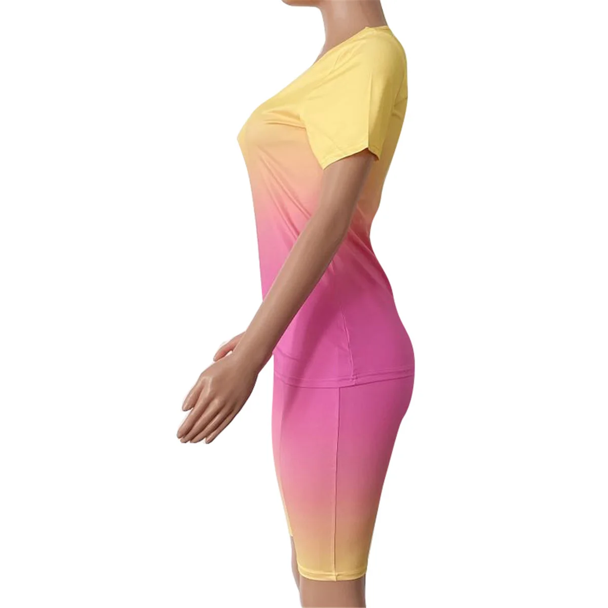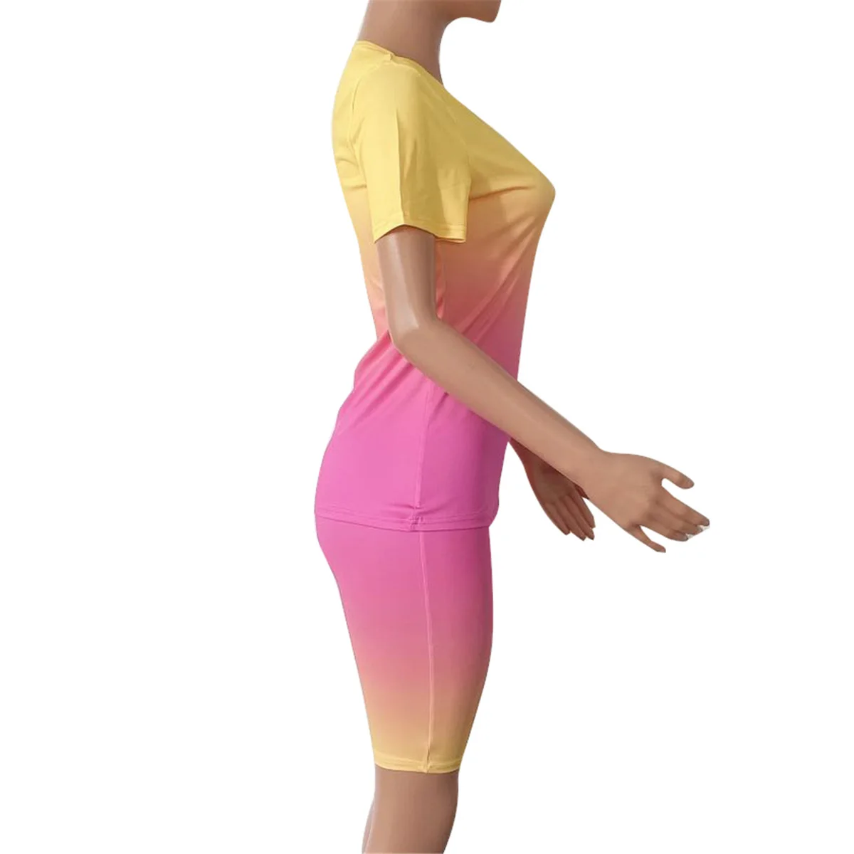 Женские повседневные костюмы из 2 предметов, градиентные футболки с...