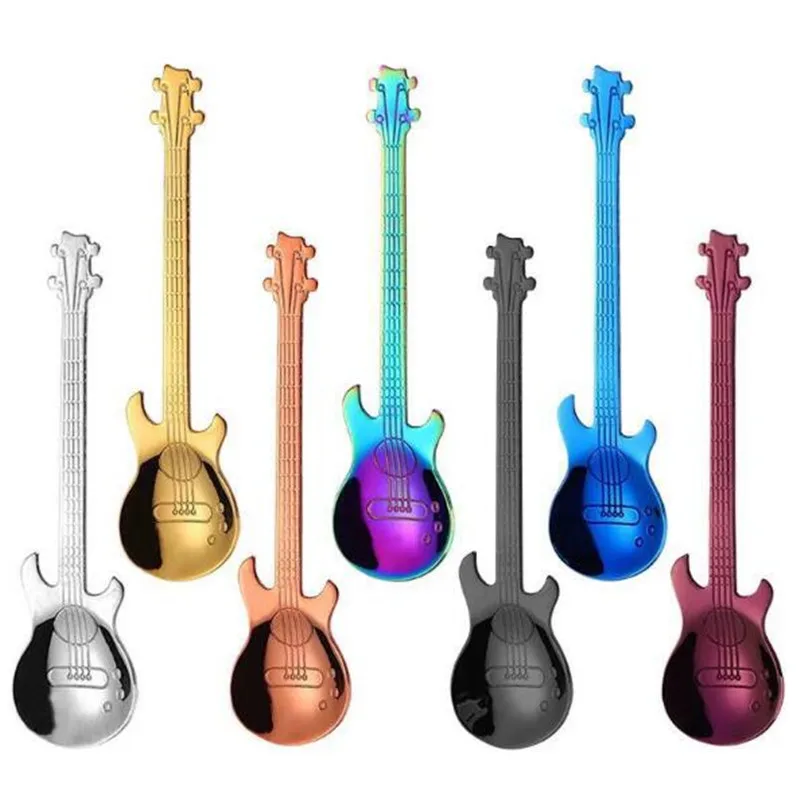 7 Цвета красивые нержавеющая сталь гитара Музыка в форме сердца любви ложка для чая и кофе детская ложка для кофе, чая, Применение аксессуары подарок