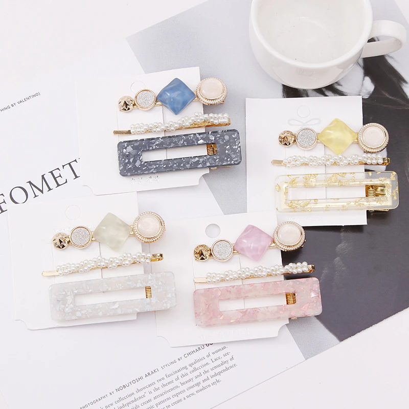 3 шт.компл. Корейская акриловая заколка для волос, женские аксессуары для волос для девочек, модные блестки, полые, имитация искусственных бриллиантов, ювелирные изделия
