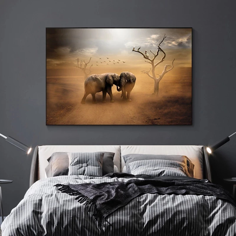Африканская пустыня слон дикие животные Картина на холсте квадратные постеры печать на стене для гостиной домашний Декор (без рамки)