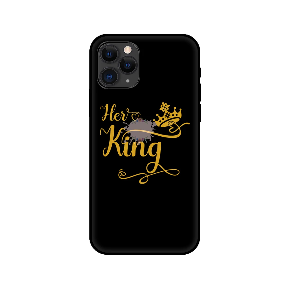Черный чехол из ТПУ для iphone 5 5s se 2020 6 6s 7 8 plus x 10 XR XS 11 12 mini pro MAX, задняя крышка King Queen, влюбленные пары