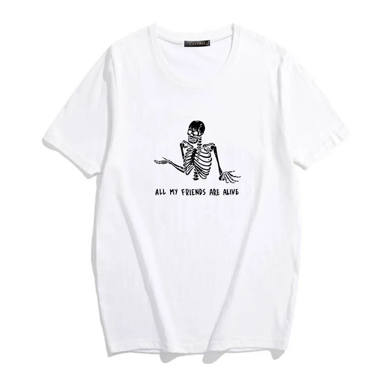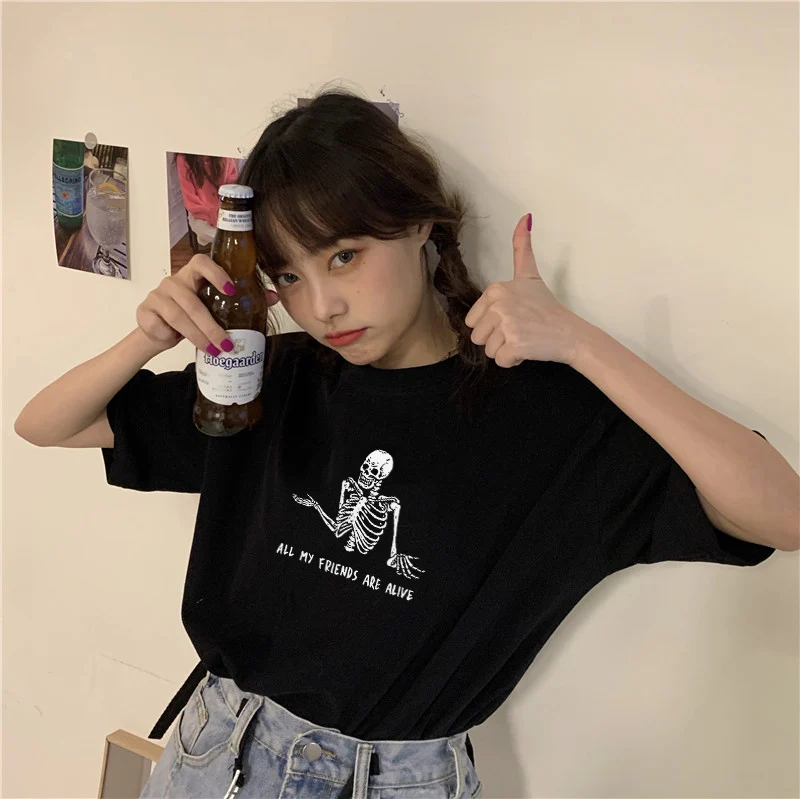 Женская футболка в стиле Харадзюку, с круглым вырезом и принтом черепа