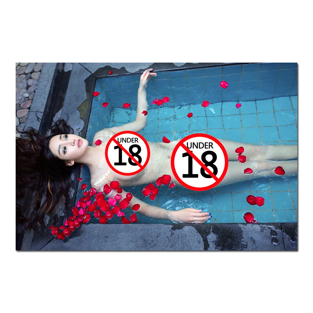 Красивая девушка в ванной, холст для живописи Wall Art плакат сканд...