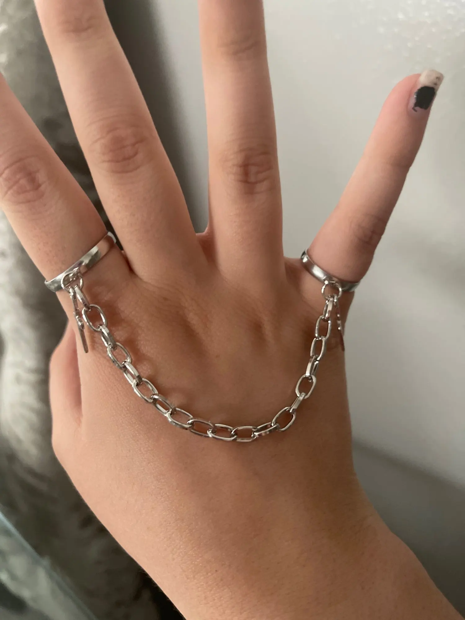 Кольцо в стиле хип-хопРок женское, металлическое кольцо с геометрическим дизайном, открытое ювелирное изделие в стиле панк, индекс аксессуары для пальцев, с перекрестной цепочкой, ювелирное изделие